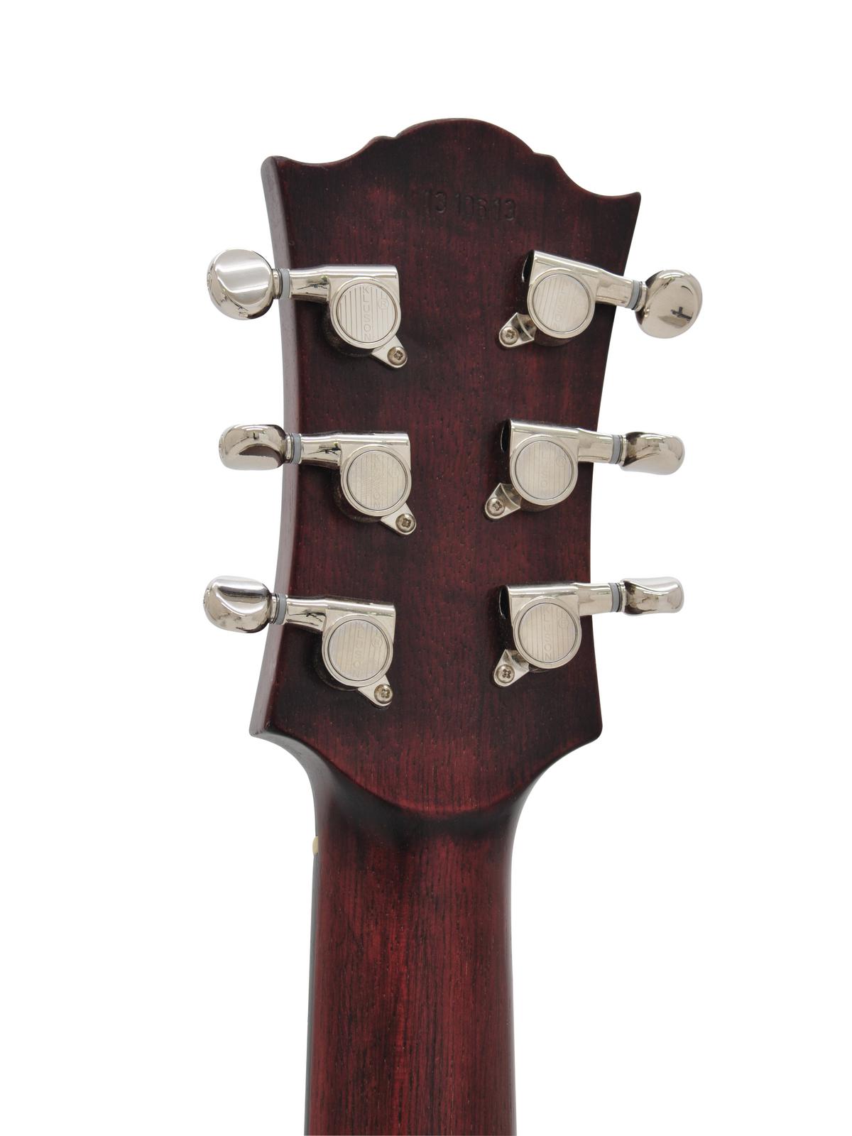 Die Gitarren sind gänzlich aus Korina-Holz gefertigt (Hals und Body). Es ist dem Mahagoni ähnlich, aber offener im Klang - die Mensur beträgt 622 mm. Das Griffbrett besteht aus perfekt beabeitetem Palisander, ohne Inlays und mit edler, dunkler Optik. 22 Mediumjumbo-Bünde, ein Knochensattel und original Kluson-Mechaniken an der Kopfplatte sorgen für saubere Töne und Stimmung.