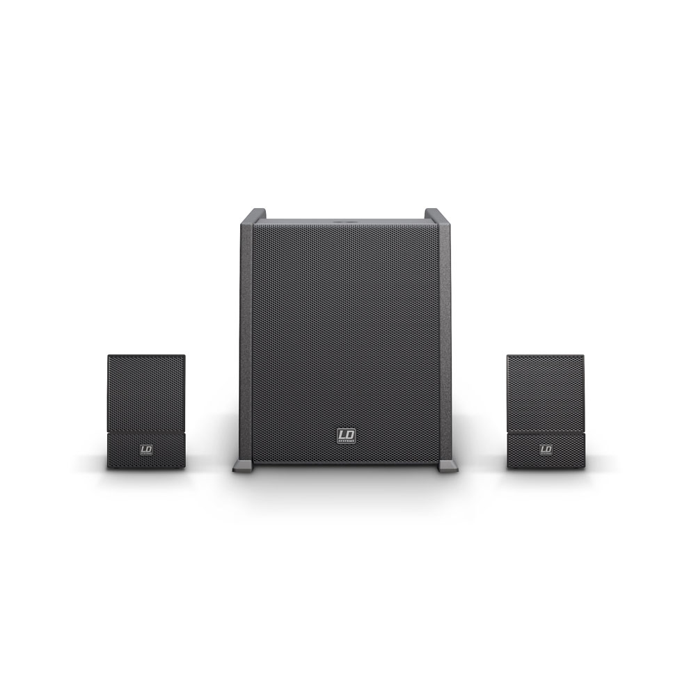 Das CURV 500 AV Set fühlt sich überall wohl, wo Musik gespielt wird: in Bars, Clubs, Studios und sogar zu Hause als Home Entertainment System. Mit 380 Watt RMS Leistung und einem maximalen Schalldruck von 122 dB kann sich das CURV AV Set dezent im Hintergrund halten, aber auch mächtig losrocken. Basis ist der 10 Bassreflex-Subwoofer mit Class-D-Verstärkung, Limiter, Schutz gegen Kurzschluss, Überhitzung und Überspannung sowie einem 4-Kanal-Mixer mit 16 digitalen Effekt-Presets und Bluetooth®. Combo- und speakON-kompatible Buchsen bieten umfangreiche Anschlussmöglichkeiten. Dazu besitzt der Subwoofer vier digitale System-Presets, einen M20-Gewindeflansch und drei ergonomische Tragegriffe. Die beiden Satelliten werden jeweils über SmartLink®-Adapter betrieben. In den nur 12 x 12 cm großen Elementen mit LD Systems eigener WaveAhead®-Technik sorgen jeweils ein 4" und drei 1" Treiber für eine kohärente und extrem detaillierte Wiedergabe mit hohem Druck und Dynamik. Zum CURV 500 AV Set gehören neben Subwoofer mit Mixereinheit und zwei Satelliten auch zwei SmartLink®-Adapter und zwei Lautsprecherkabel.Mit optional erhältlichen Wand- und Deckenmontagesystemen können die Satelliten überall da fest installiert werden, wo guter Sound und dezente Optik gewünscht sind.