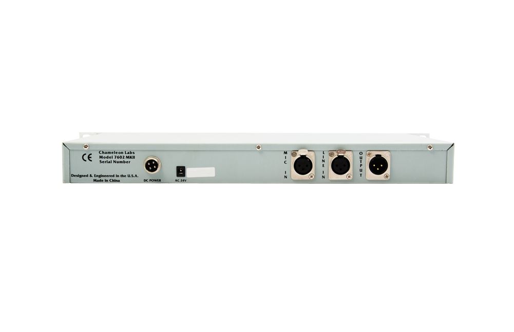 Mikrofonvorverstärker mit Carnhill-Übertragern, einkanalig, 19, 1HE, diskret aufgebaute Class-A-Schaltung mit Fairchild-Transistor, trafosymmetrierter Mikrofoneingang (XLR) mit Carnhill-Übertrager, geschirmt gegen HF-Einstreuungen, Impedanz umschaltbar (300 Ohm/1200 Ohm), trafosymmetrierter Line-Eingang (XLR), geschirmt gegen HF-Einstreuungen, DI-Eingang für hochohmige Signalquellen (6,3-mm-Klinke), 20-stufiger Gain-Drehschalter, 20 dB bis 80 dB (Mikrofon), -20 dB bis +10 dB (Line), Hochpassfilter und semiparametrischer 3-Band-EQ, Schaltung beruhend auf Spulen und Kondensatoren, Eck- bzw. Einsatzfrequenzen mit 5-stufigen Drehschaltern wählbar, EQ ±20 dB regelbar, Hochpassfilter -18 dB/Oktave, trafosymmetrierter und galvanisch getrennter Line-Ausgang (XLR) mit Carnhill-Übertrager, Stahlblechgehäuse mit 6 mm starker Aluminium-Frontblende, Gewicht: 4,54 kg