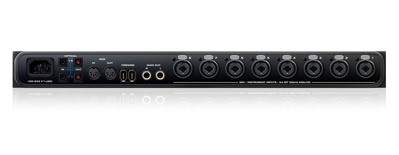 Getrennte Ein-/Ausgänge - im 8pre werden keine Kanäle gemeinsam genutzt; die Mikrofoneingänge, ADAT