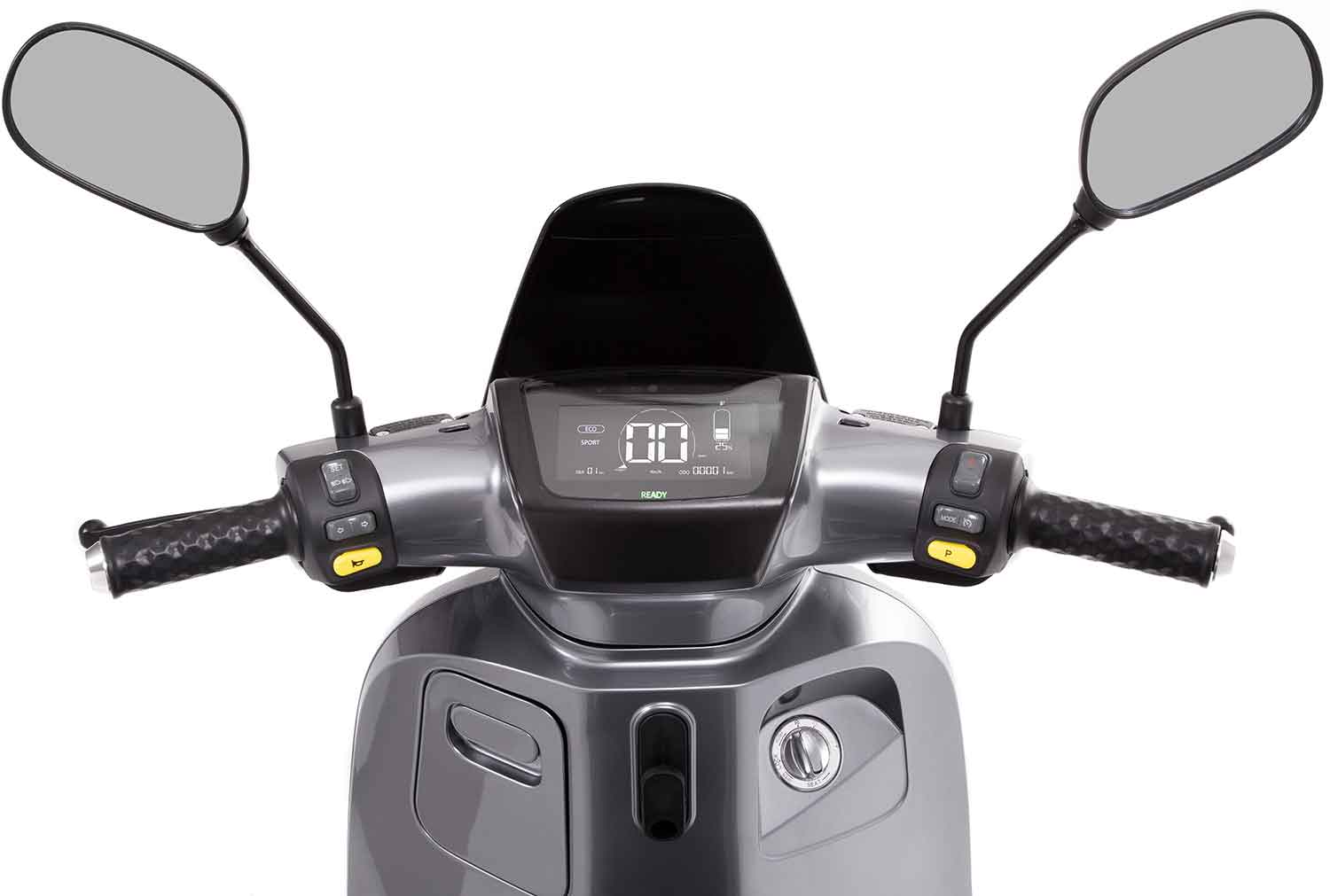 Das Fahrzeug verfügt über eine Keyless-Go Funktion. Diese erlaubt die Aktivierung des yadea C1S Elektrorollers ohne den Schlüssel aus der Hosentasche nehmen zu müssen. Das smarte Multifunktionsbedienteil aktiviert und deaktiviert das Fahrzeug, öffnet bei Bedarf den Sitz und verriegelt gleichzeitig auch das Lenkradschloss.
