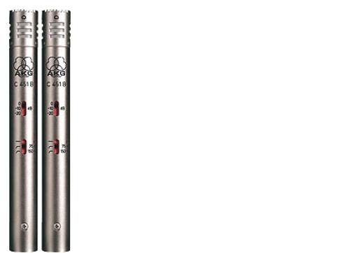 2x Kondensatormikrofon AKG C 451 A Richtcharakteristik: Niere vernickelt mit schaltbarem HP (75/150 Hz) und Pegelabschwächung (-10/-20 dB) CK 1 Kapsel incl. Windschutz W90, Klemme SA40 und Etui ideal für Overhead, HiHat, Percussion, Akustikgitarre Der Klassiker neu aufgelegt!