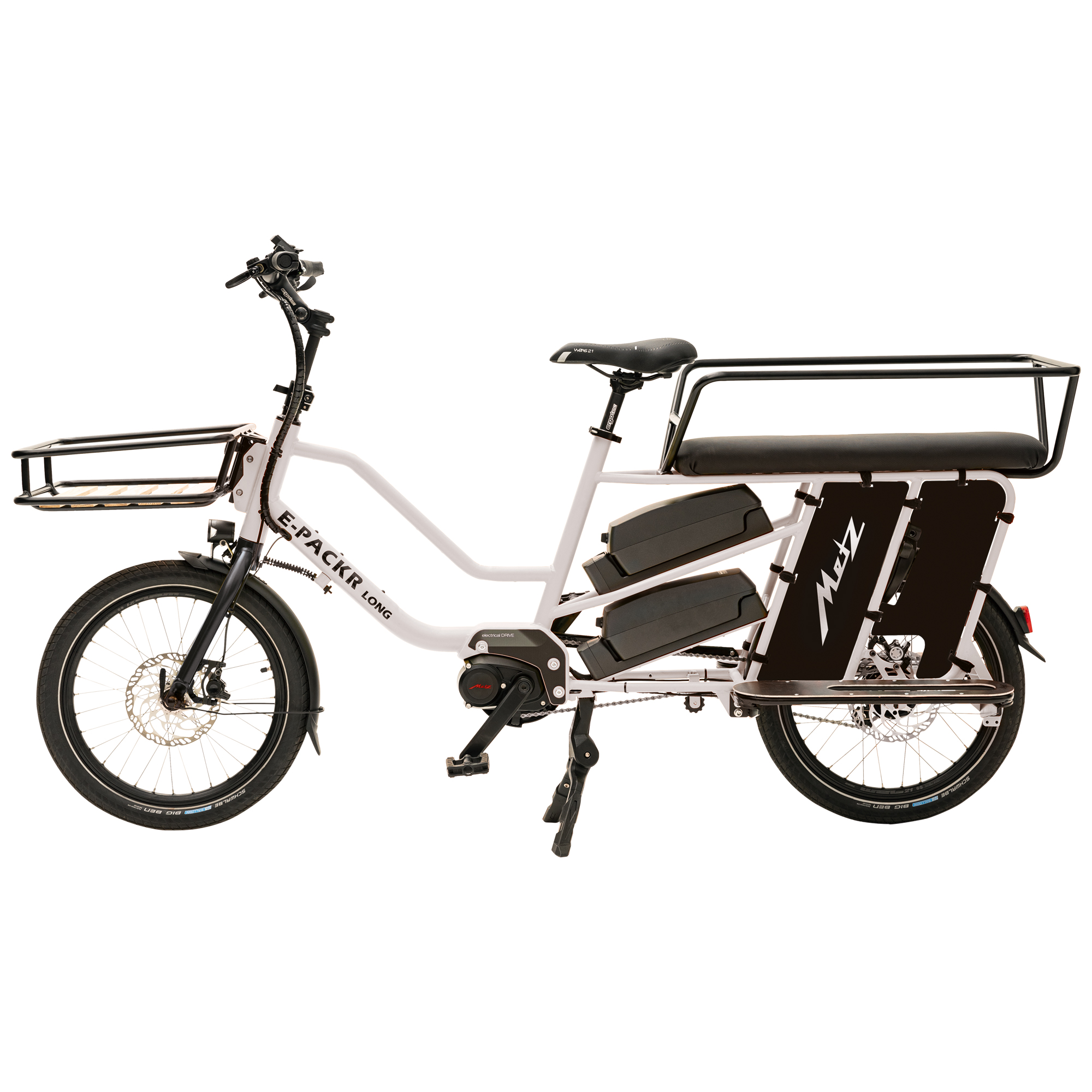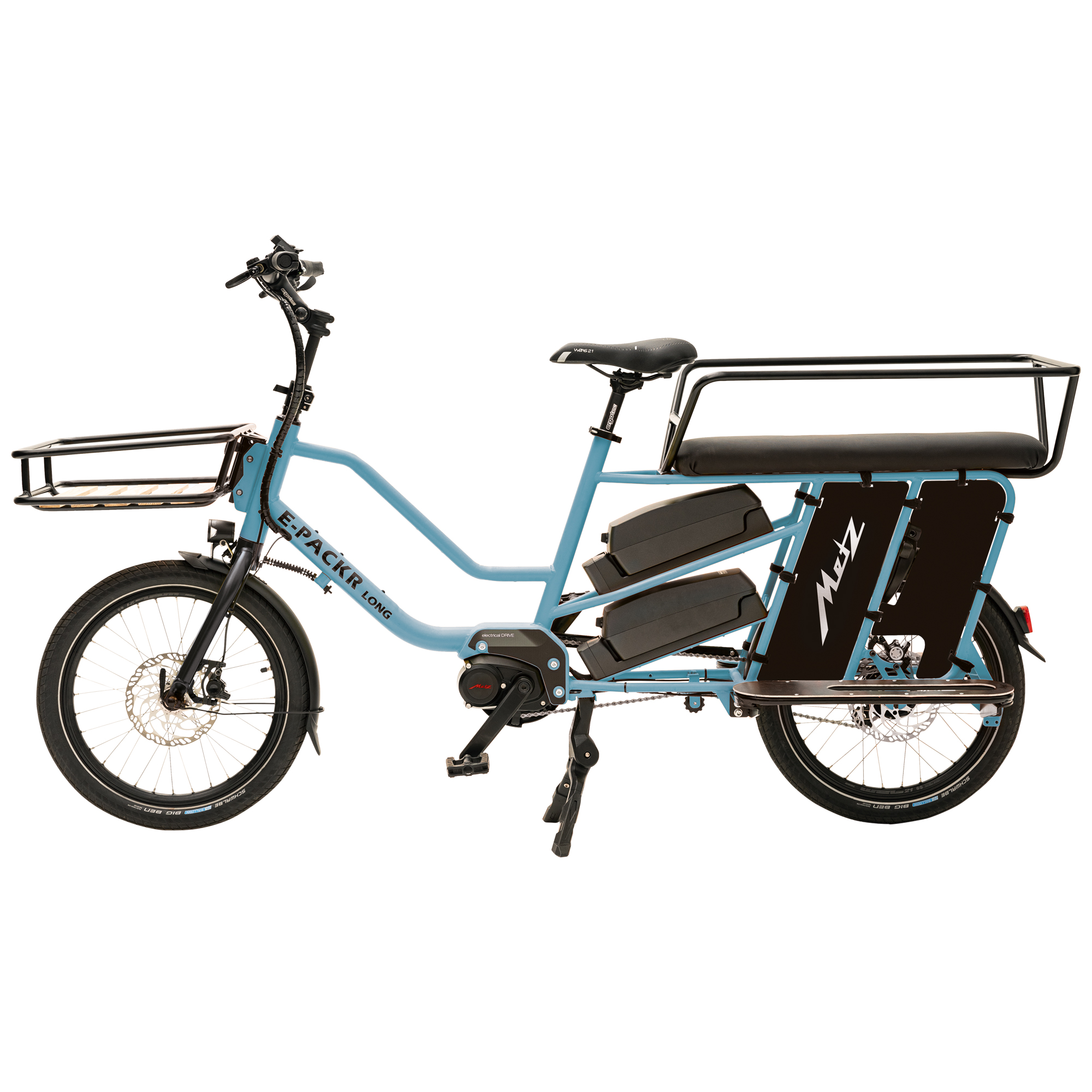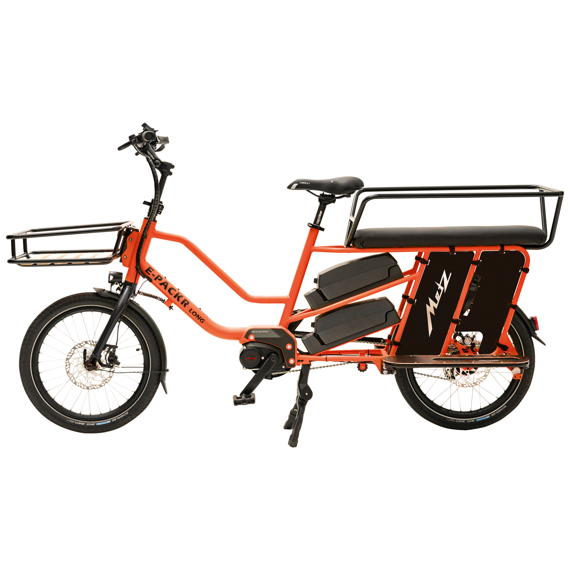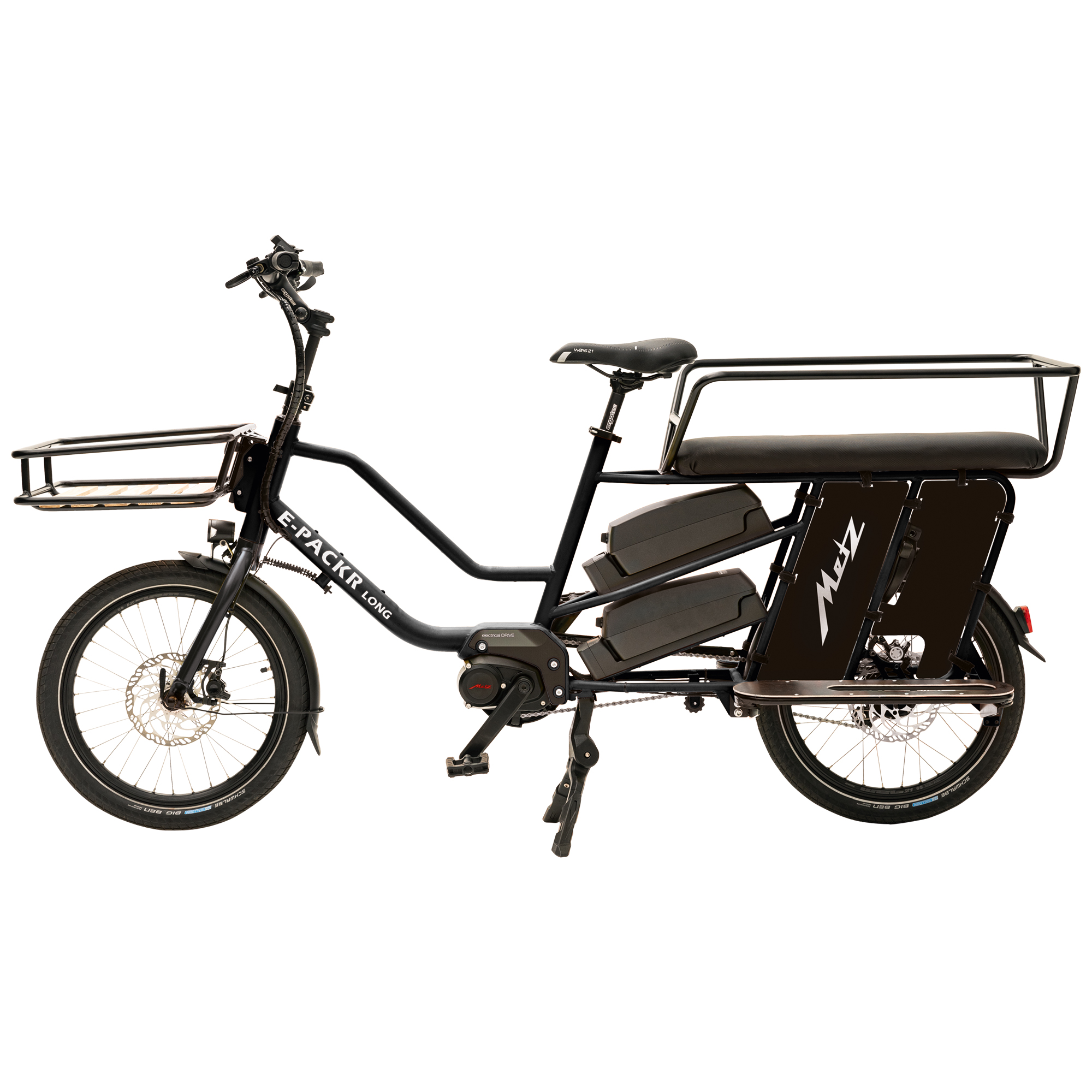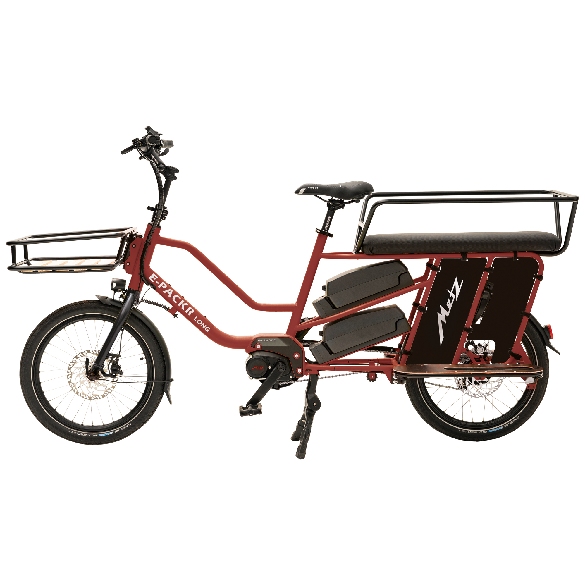 Der E-Packr long erfüllt die Ansprüche von Familien. Er ist ideal für Transporte aller Art und bietet Platz für bis zu 3 Kinder. Das Fahrrad ist bequem und gut zu fahren und hinten mit einer weichen Bank ausgestattet. Vorne hat es einen abnehmbaren Korb (MTS-Metz Trägersystem). Es kann ein Kindersitz an der Lenksäule angebracht werden. Kompatibel mit den bekanntesten Zubehörherstellern. Zur Standardaustattung gehört nur 1 Akku! Der zweite ist als Zubehör erhältlich. Farbdisplay sehr gut ablesbar, Bedienteil in Griffnähe, ausgezeichnete Konnektivität, USB-Schnittstelle, Komoot kompatibel.