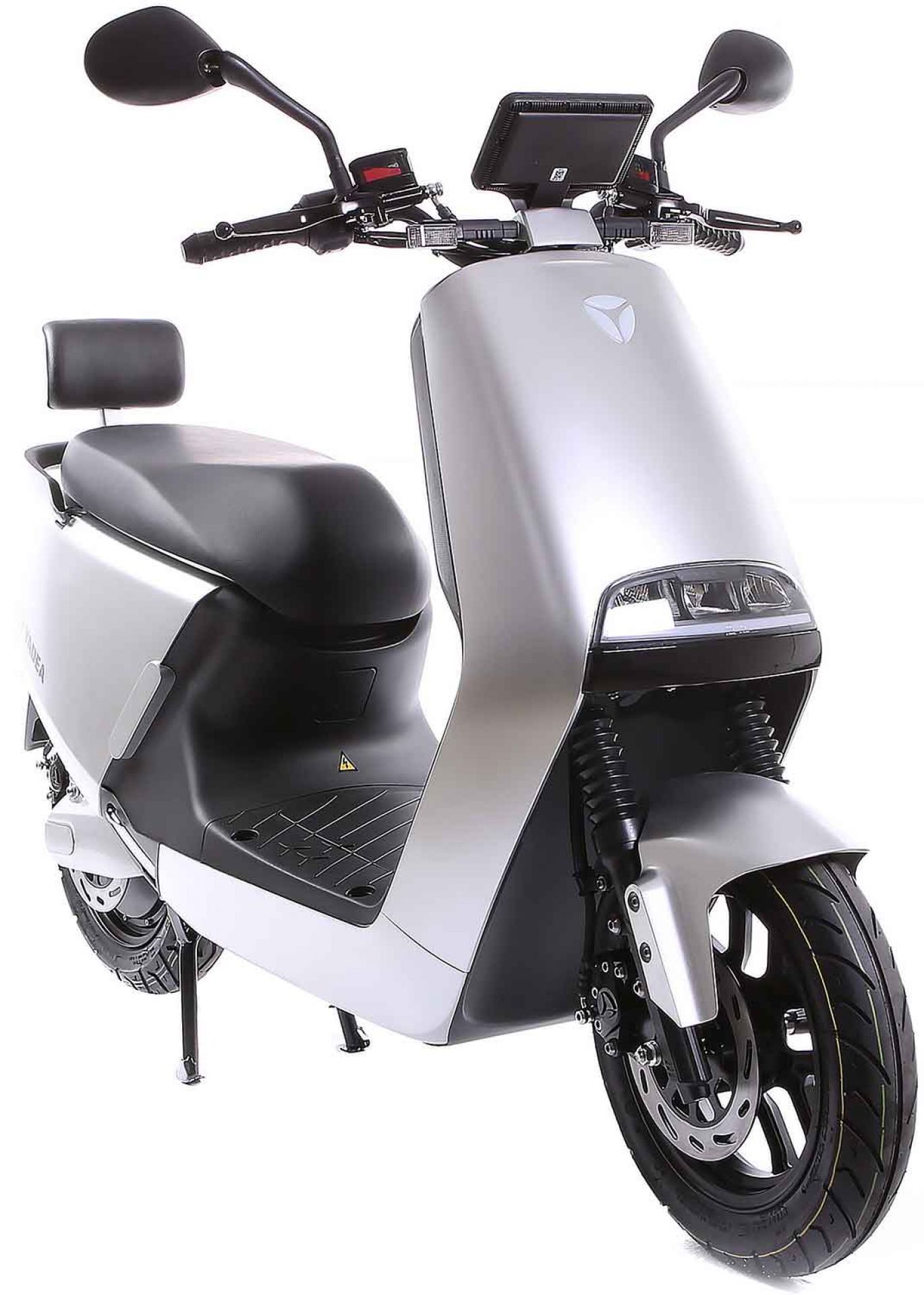 Der Elektroroller yadea G5 setzt neue Maßstäbe in vielerlei Hinsicht. Die Rahmenkonstruktion besteht aus kaltgewalztem Stahl, welcher selbst den härtesten Vibrationstests ohne jegliche Beschädigungen standgehalten hat. Die Hinterradschwinge besteht aus hochfestem Aluminium, mit einer Maximallast von 155 kg und ist doppelt gefedert. Die ebenfalls doppelt gefederte Vordergabel bügelt verlässlich sämtliche Unebenheiten aus der Fahrbahn und sorgt so für hervorragende Fahreigenschaften.Der Antriebsstrang des G5 Elektrorollers besteht aus einem bürstenlosen GTR 3.0 Nabenmotor mit 2.300 W max. Leistung, bei einer Betriebsspannung von 60V und einem max. Drehmoment von 120 Nm. Angesteuert wird dieser durch einen sog. FOC Controller / feldorientierte Vektorsteuerung. Die max. Geschwindigkeit beträgt 45 km/h. Die benötigte Energie stellt ein 60V 32Ah Lithium Ion Akku bereit, in dessen Inneren Panasonic 18650 Zellen verbaut sind, wie sie bspw. auch beim Tesla Model S verwendet werden. Die Kapazität des Akkus von 1920 Wh reicht für eine Fahrtstrecke von bis zu 80 km aus. Der Akku kann zum Laden falls gewünscht aus dem Fahrzeug entnommen und mit dem mitgelieferten IP67 geschützten Ladegerät an jeder haushaltsüblichen 230V Steckdose innerhalb von max. 8 Stunden voll aufgeladen werden.Am Lenker besitzt der yadea G5 Elektroroller ein 7 Zoll VA LCD Hochkontrast-Display mit automatischer Helligkeitsregelung, auf welchem sämtliche relevanten Daten wie Geschwindigkeit, Ladezustand, Rest Reichweite, gefahrene Wegstrecke und vieles mehr präzise und übersichtlich angezeigt werden. Um Langfingern das Leben möglichst schwer zu machen, besitzt der G5 eine Alarmanlage sowie eine Wegfahrsperre die mittels einer Funkfernbedienung aktiviert/deaktiviert werden kann.Die großen 12 Zoll Räder garantieren eine sichere Straßenlage. An beiden Rädern verbaut ist eine 220 mm vollhydraulische Scheibenbremse. Das Fahrzeug ist für 2 Personen zugelassen und verfügt unter der bequemen Sitzbank ein großes Helmfach mit 26 Liter Volumen. Optional erhältlich ist zusätzlich ein Gepäckträger für hinten, auf welchem ein Top Case montiert werden kann. Insgesamt wiegt der Elektroroller 88 kg wovon 11 kg auf den Akku entfällt.Um das Smartphone oder auch andere Mobilgeräte bequem währen der Fahrt laden zu können, besitzt der eRoller vorne am Lenker eine USB Ladebuchse.ACHTUNG: Rollermodell ist europaweit im Rahmen der STVZO zugelassen. Fahrzeug ist in Deutschland führerscheinpflichtig - Ab 16 Jahre mit Führerscheinklasse A1, AM; ab 18 Jahre mit jedem Führerschein der Klassen 1a, 1, 2, 3, A, B oder C. Bei einem Kauf ausserhalb Deutschlands bitte gem. den in Ihrem Land geltenden Vorschriften hinsichtlich evtl. Führerscheinpflicht informieren. Lieferumfang:Die Lieferung des Fahrzeugs erfolgt zu 100 % fertig montiert und fahrbereit.