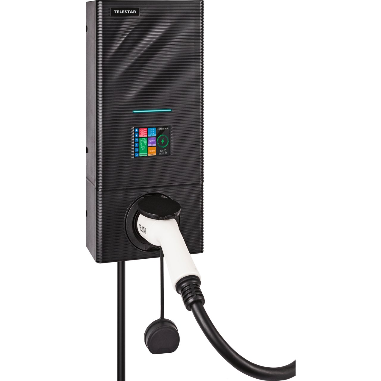 Die TELESTAR EC 311 S ist eine dreiphasige Wallbox und eignet sich zum Laden eines Elektro-/Hybridfahrzeuges. Mit einer Leistung von max. 11kW bei 16A je Phase ist die EC 311 S KfW-förderfähig*. Die Ladezustände werden auf einem 3,5 Zoll LCD-Farbdisplay (Touch Screen) angezeigt. Ferner kann der Nutzer sich über den Google Play Store für sein Android Smart-Phone oder Tablet oder im Apple Store für seine iOS mobilen Geräte eine App kostenlos herunterladen die einen Vielzahl von Funktionen unterstützt. Das kleine 44 x 20 x 10,5 cm und zugleich elegante Gehäuse der Wallbox ist hitzebeständig und erfüllt die Anforderungen der Schutzklasse IP 66. Die Wallbox kann somit in einem Carport, an einer Hauswand oder freistehend (Montagesäule optional) auf einer Einfahrt installiert werden. *Die EC 311 S erfüllt die Kriterien der KfW für den Zuschuss 440 Ladestationen für Elektroautos Wohngebäude sowie für den Zuschuss 441 "Zuschuss für Ladestationen in Unternehmen und kommunalen Unternehmen, für freiberuflich Tätige und gemeinnützige Organisationen". LEISTUNGSMERKMALE