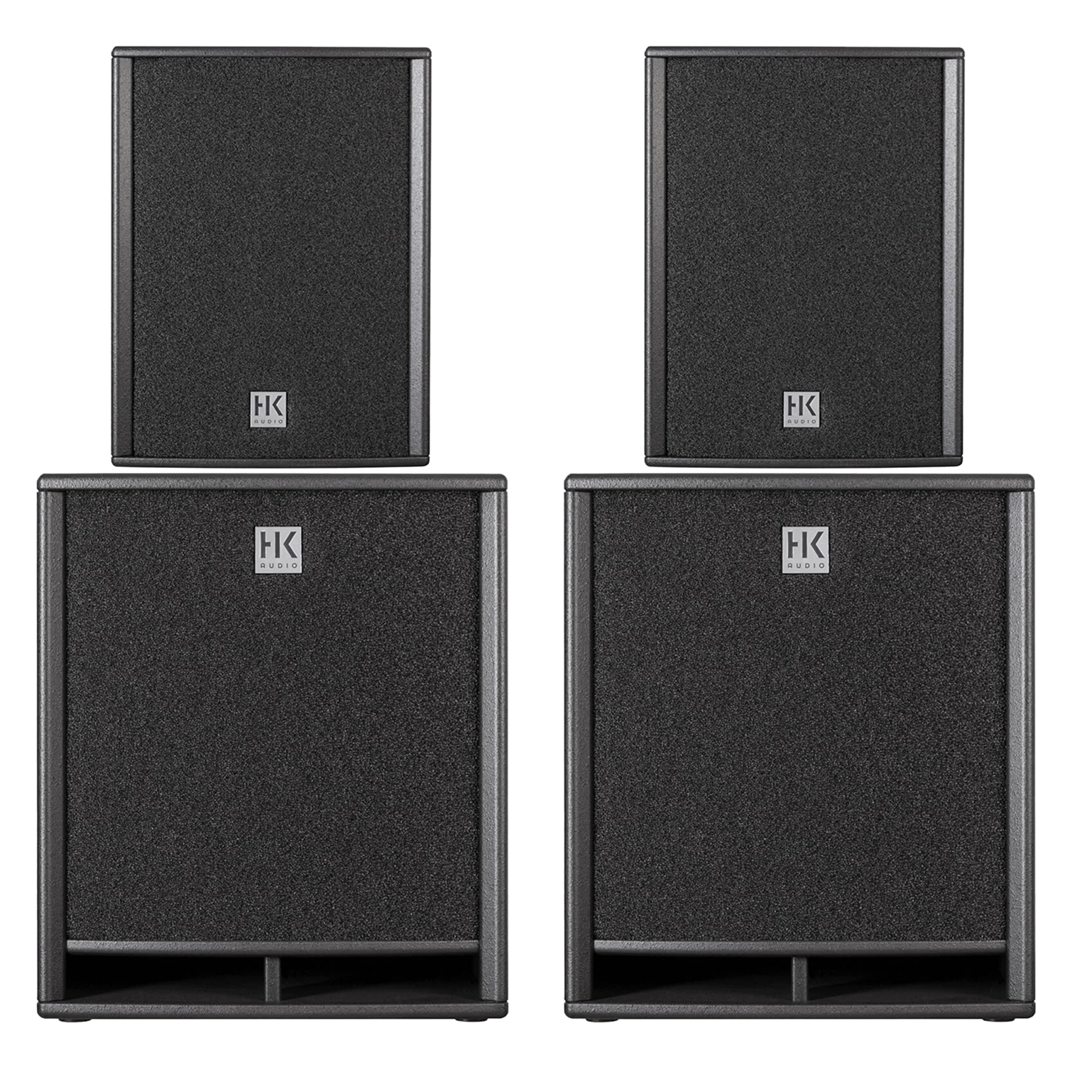 2x HK AUDIO Premium PR:O 18 S Passiver 18-Subwoofer Hi-Power 18 Subwoofer mit vollwertiger Frequenzweiche für ein kräftiges Bassfundament. HK Audio PREMIUM PR:O 18S Features: * Belastbarkeit: 500W RMS, 1000W Programm * Impedanz: 4 Ohm * Frequenzgang +/- 3dB: 48Hz - 150Hz (über interne Weiche) * Frequenzgang -10 dB: 38Hz - 150Hz (über interne Weiche) * Lautsprecher: 1x 18 * Empfindlichkeit: 104 dB * Max. Schalldruck: 129 dB * Trennfrequenz der passiven Weiche: 50 Hz/12 db Oktave * Anschlüsse: 2x Speakon * Hochständerflansch: HK Audio DuoTilt, Neigungswinkel: 7,5 und 15 * Maße (BxHxT): 530 x 610 x 640 mm * Gewicht: 41,6 kg 2x HK Distanzstange mit M20 Gewinde, höhenverstellbar (70-145 cm) 2x HK Audio PREMIUM PR:O 15 Die PR:O 15 ist eine klassische Fullrange-Box für alle Anwendungen, bei denen kein Subwoofer zum Einsatz kommt. HK Audio PREMIUM PR:O 15 Features: * Lautsprecher: 1x 15, Hochtonhorn: 1 * Belastbarkeit nominal: 400 Watt RMS, 800 Watt Program * Impedanz: 8 Ohm * Frequenzgang +/- 3dB: 60 Hz - 19 kHz * Frequenzgang -10 dB: 53 Hz - 19 kHz * Empfindlichkeit: 104 dB * Max. SPL: 128 dB * Anschlüsse: 2x Speakon * Hochständerflansch: HK Audio DuoTilt * Neigungswinkel: 7,5 und 15 * Flugpunkte: 3x M8 eingelassene Gewinde * Maße (BxHxT): 470 x 615 x 410 mm * Gewicht: 21,1 kg Highlights