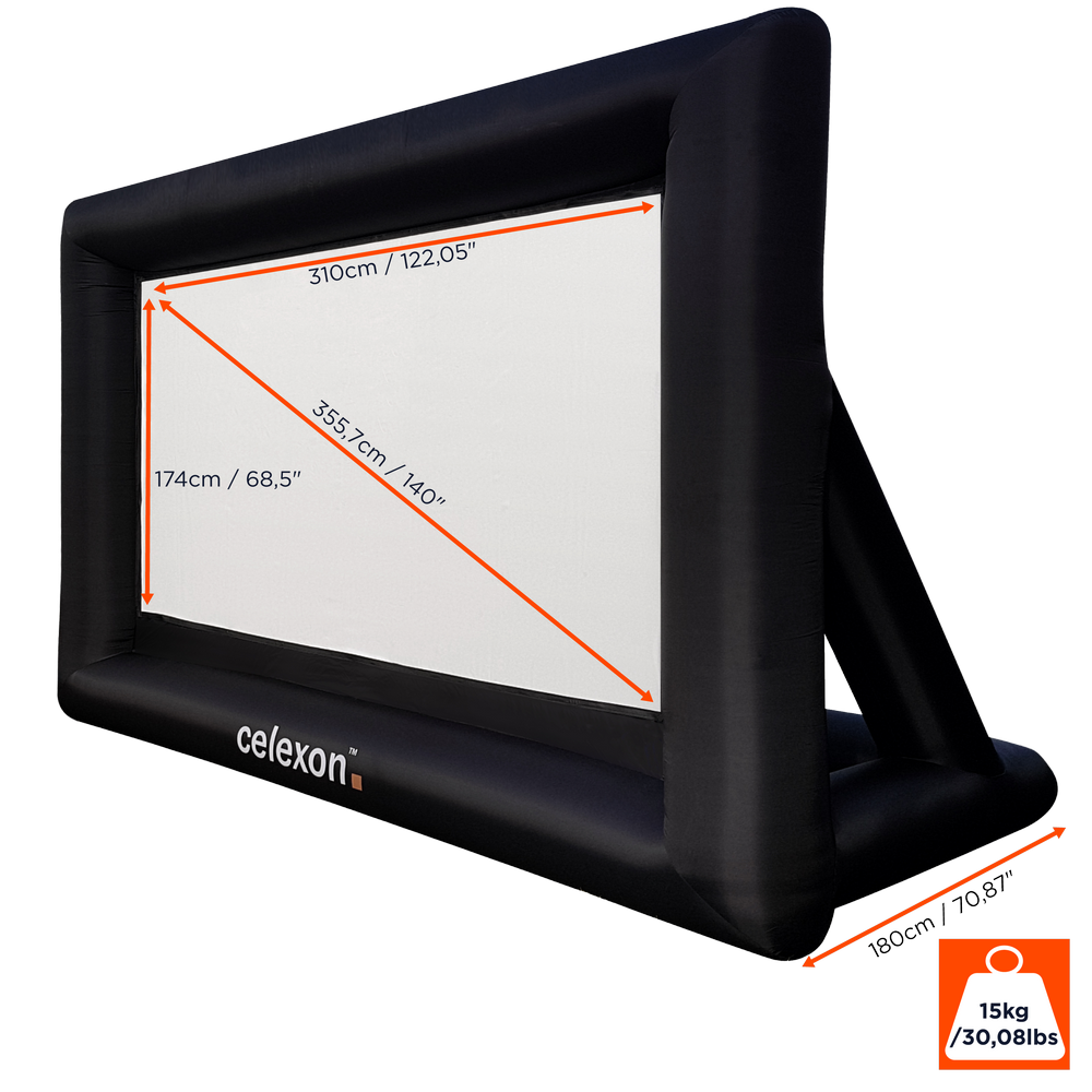 Erleben Sie mit der celexon aufblasbaren Outdoor-Leinwand INF200 großes Kino im Freien zu einem unschlagbar günstigen Preis. Ob beim Rudelgucken in einem Biergarten, bei Ihnen zu Hause im Garten, oder einer Veranstaltung; unsere Leinwand präsentiert Ihre Bilder mit einer beeindruckenden Bilddiagonale von über 350cm.