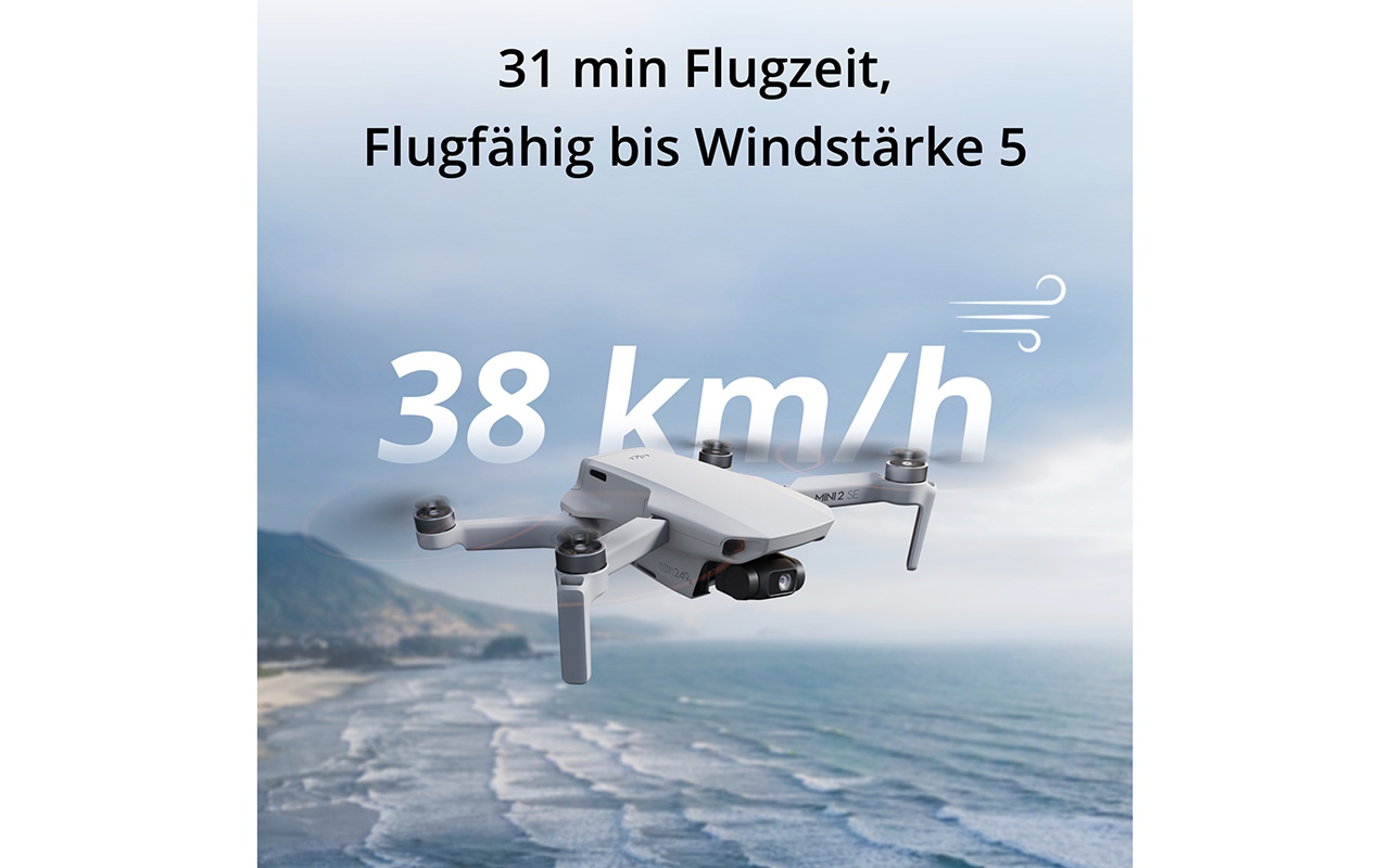 Die Mini 2 SE ist flugfähig bis Windstärke 5 (38 km/h). Damit bleiben deine Aufnahmen in mehr Flugszenarien stabil, egal ob am Strand oder in den Bergen. Nimm mit einer Starthöhe von 4.000 m Szenen auf, die weit über dem Durchschnitt liegen.