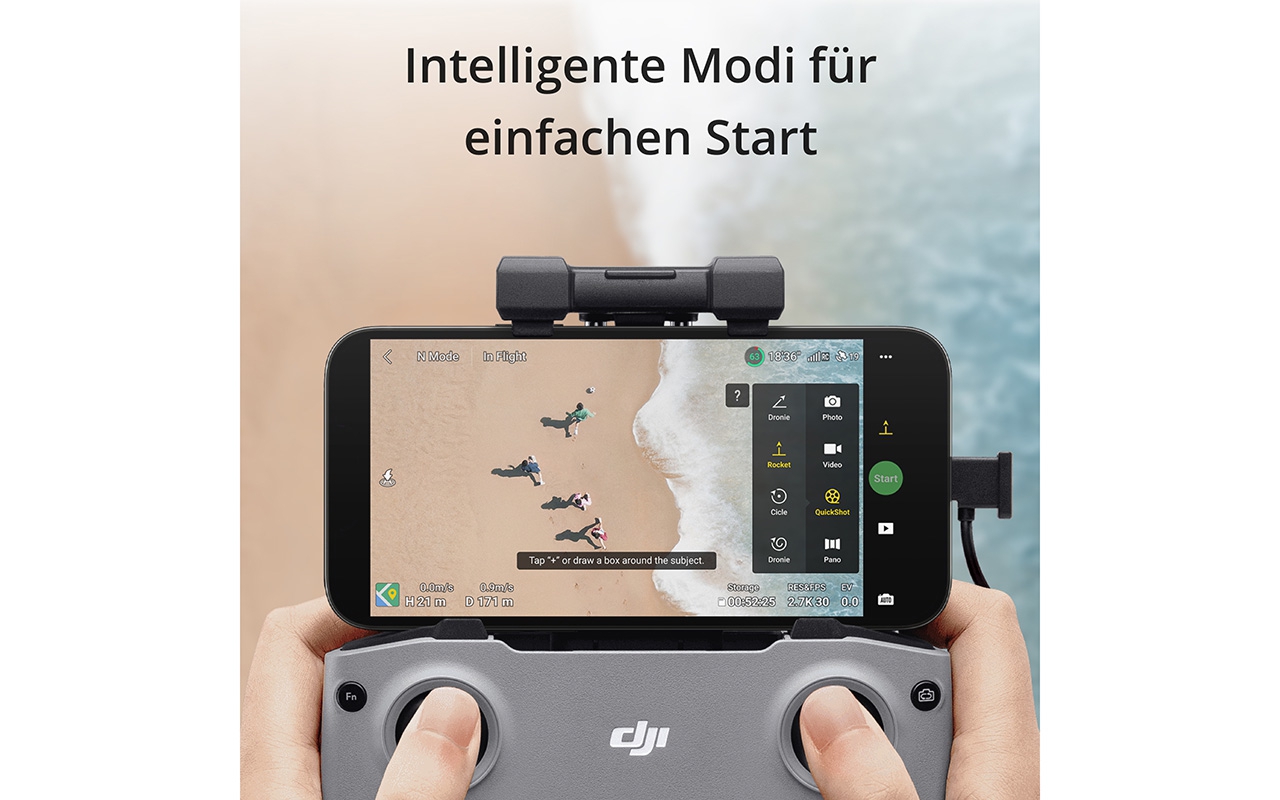 Die DJI Mini 2 SE ist einfach und intuitiv für Anfänger, mit autom. Start/Landung, Rückkehrfunktion, stabilem Schweben und vielem mehr.