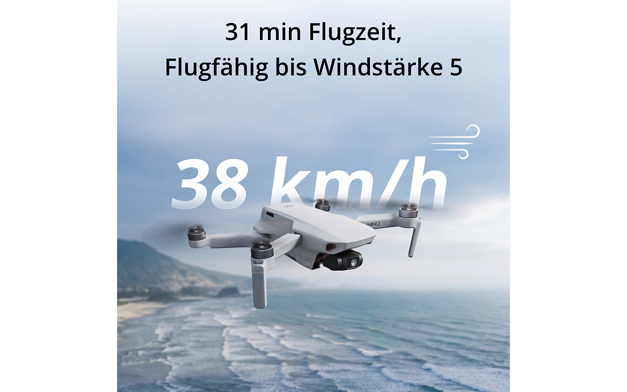 DJI Mini 2 SE ist ideal, um Luftbilder aufzunehmen. Mit einem Gewicht von weniger als 249 g ist sie in einigen Ländern und Regionen von der Registrierungspflicht befreit*. Sie ist auch erstaunlich einfach zu bedienen, hat eine Flugzeit von bis zu 31 Minuten, eine Übertragungsreichweite von 10 km und vieles mehr.