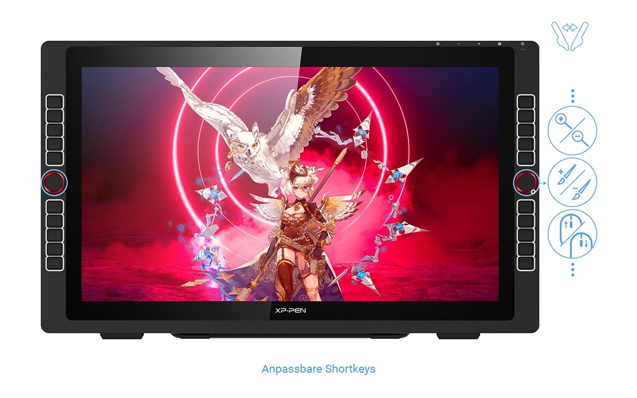 Die anwenderfreundlichen roten Wählräder und 20 anpassbaren Tastenkombinationen des XP-Pen Artist 24 Pro erhöhen den Komfort. Sie befinden sich auf beiden Seiten des Displays und sind somit für Links- und Rechtshänder gleichermaßen zugänglich.