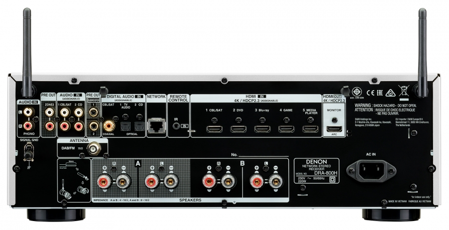 Genießen Sie mit dem 2-Kanal HiFi-Netzwerk-Receiver DRA-800H sowohl von analogen als auch digitalen Quellen Sound in echter DENON Qualität. Verbessern Sie Ihr Audio- und Heimkino-Erlebnis. Dank UKW/DAB+ Radio, einer Vielzahl an Anschlüssen, Netzwerk-Integration und HDMI kann der DRA-800H problemlos mit Ihrem TV, Radiostationen, Musikdiensten und HiFi-Systemen verbunden werden. Hinter seiner Aluminium-Frontplatte befindet sich ein fortschrittliches Verstärker-Design und viel Leistung für eine detaillierte und präzise Abbildung mit Ihren Lautsprechern.