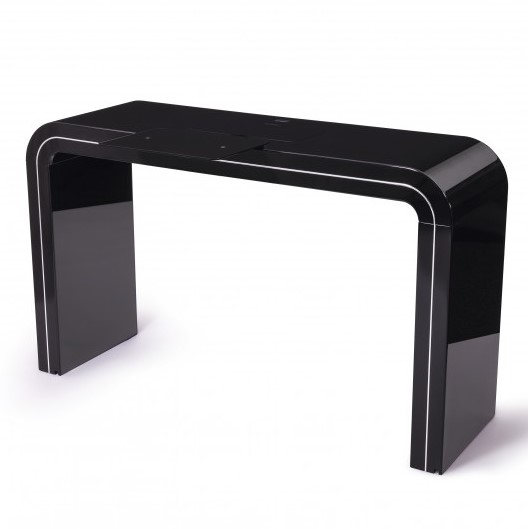 - massive Glasplatte in Hochglanzoptik als Ablagefläche für einen Laptop
