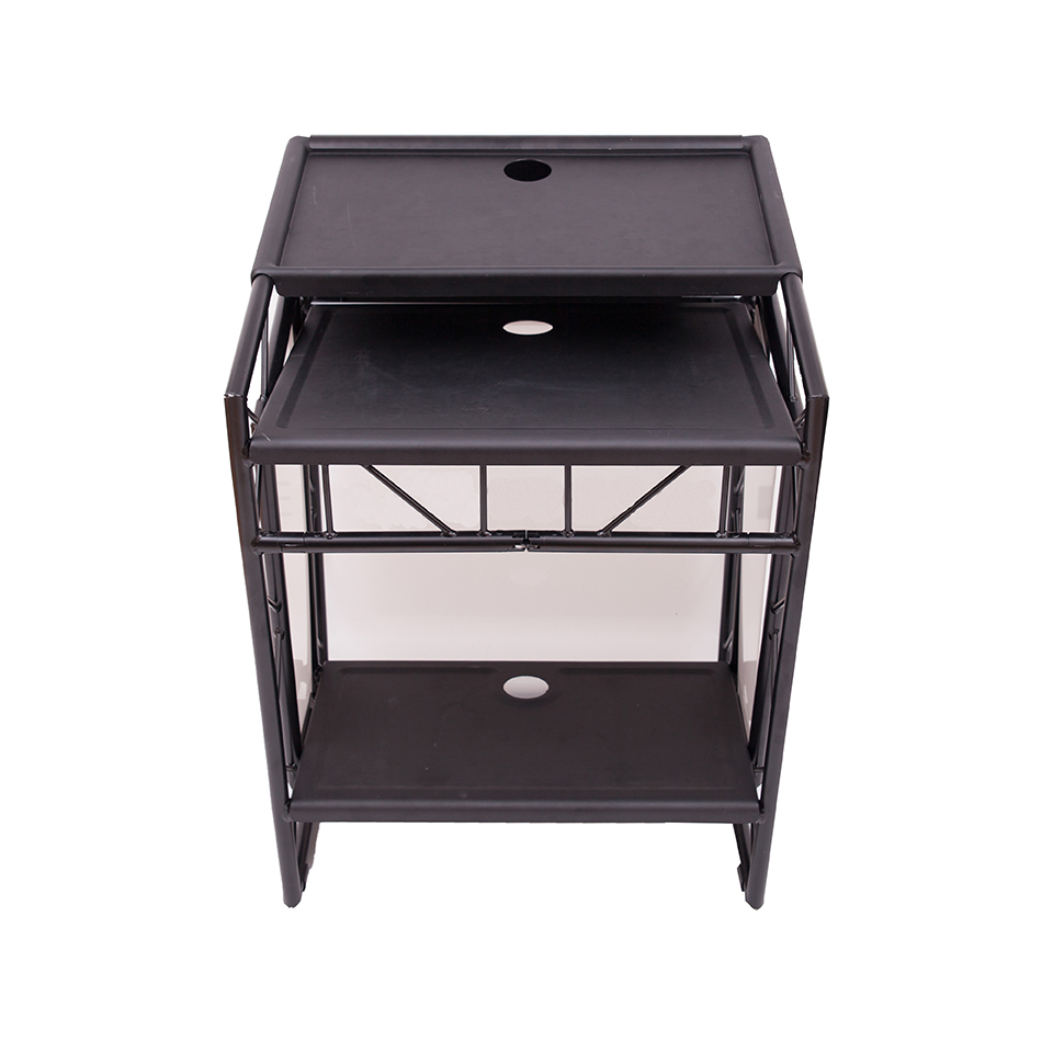 - Drei Ablageflächen für DJ-Equipment und Zubehör