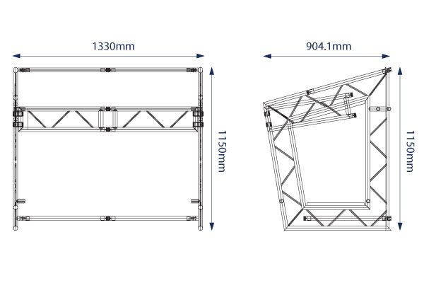 - Abmessungen (XRPS aufgebaut): 133cm x 115cm x 66cm/95cm (Tiefe: unten / oben) (BxHxT)