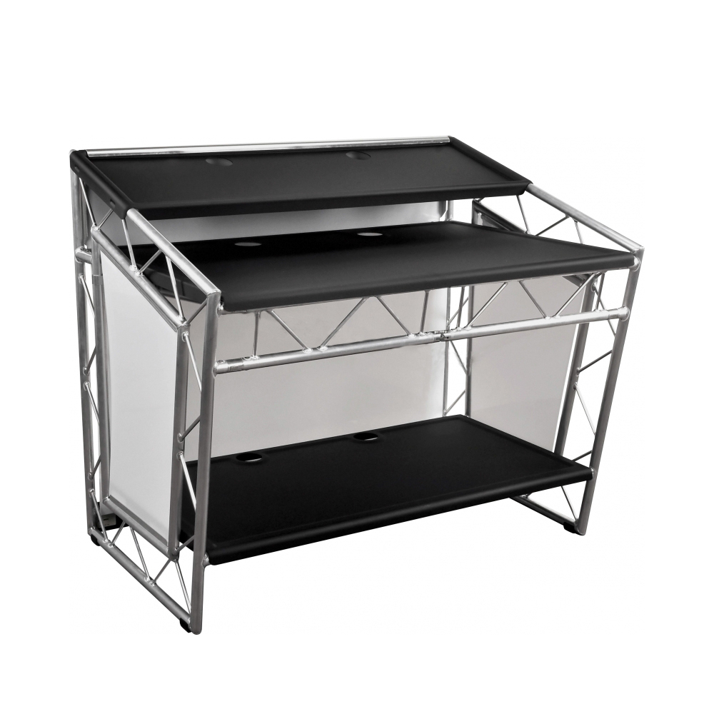 - Drei Ablageflächen für DJ-Equipment und Zubehör