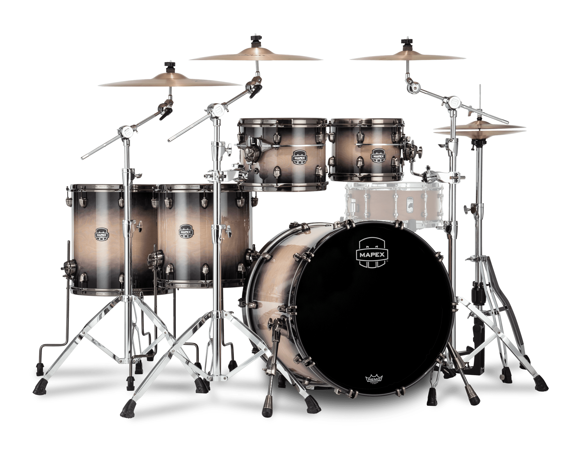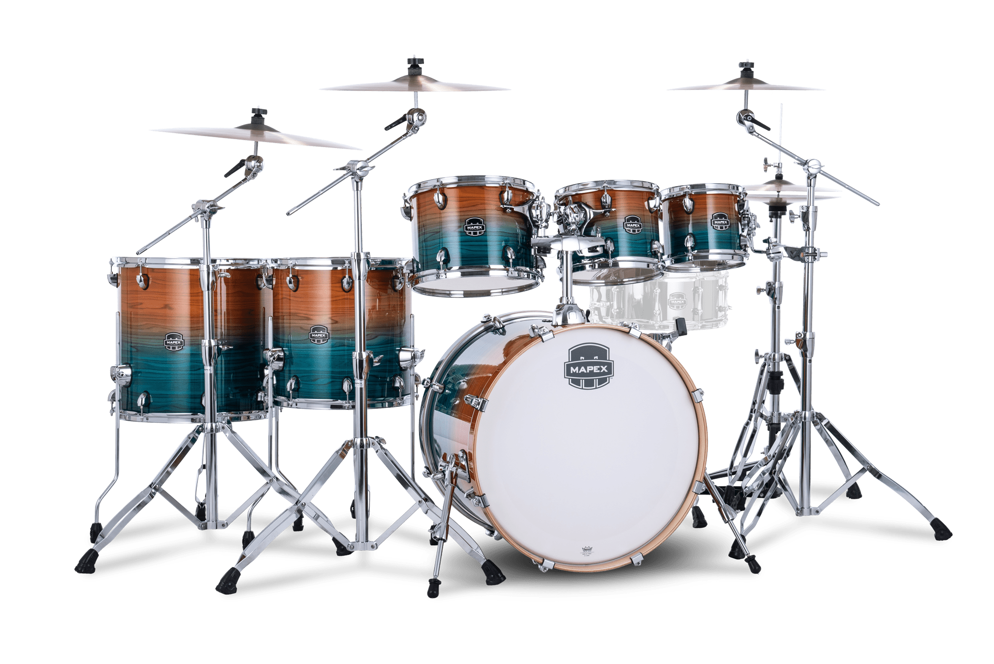 Modell MXSE628XMBPZ MAPEX Shellset, Saturn Evolution Maple Exotic, Stage+ Finish Exotic Violet Burst Konfiguration Shell Set bestehend aus BD 22x18, TT 10x8, TT 12x9, FT 14x14, FT 16x16, 2x Tomhalter TH800 Kesselkonstruktion Maple / Walnut / Maple 8 Lagen 7,5 mm (TT 8-10) 8 Lagen 8,2 mm (TT/FT 12-16) 8 Lagen 8,9 mm (BD/GD 18-24) Fellbestückung Remo Farbe Kesselhardware Black Brushed Besonderheiten HALO Mounting System Chamber Specific Design SAS Static 90° Floor Tom Leg SAS Sonic Pedestal Foot Floor Tom Isolation Gaskets Air Flow Venting SAS Scale Finishes Ohne Becken, ohne Snare, ohne Hardware