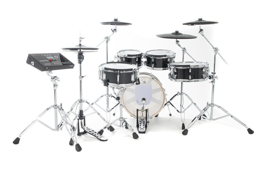 Full-Size-Holzkessel in edlem Black Sparkle-Finish sorgen für den phänomenalen Look eines echten Drumsets. Die Studio-Pad-Variante bietet die platzsparende Lösung, ohne auf die Spielbarkeit eines Highend-Edrums zu verzichten.