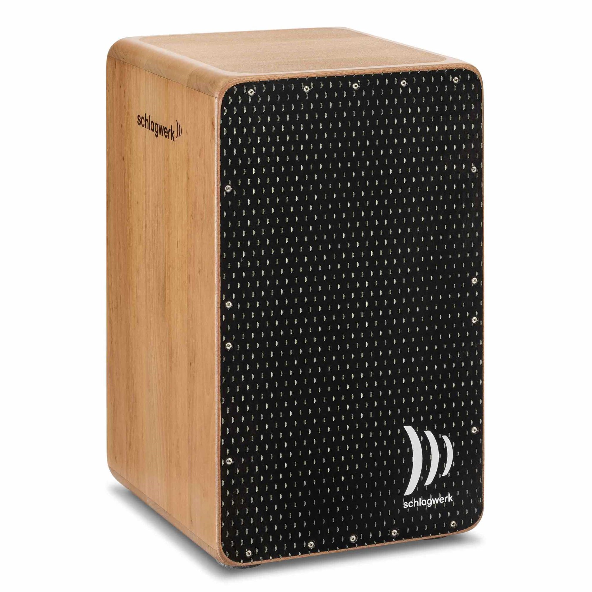 SCHLAGWERK CP4007 CAJON WURZEL Cajon la Peru Dieses Instrument ist dem peruanischen Cajon nachempfunden. Seine spezielle Bauweise und sein raffiniertes Innenleben führen zu dem unverwechselbaren Bass- und Snare-Sound, der an den Klang eines Schlagzeugs erinnert. Das Cajon la Perù, auch bekannt als Rumba-Kiste, ist universell einsetzbar: in der traditionellen Musik Lateinamerikas, im modernen Flamenco, sowie als Ergänzung zum Schlagzeug in der Pop-Musik. Wurzelholzfurnier, 50x30x30 cm, Sound: trockener Bass, ausgeprägte Mitten