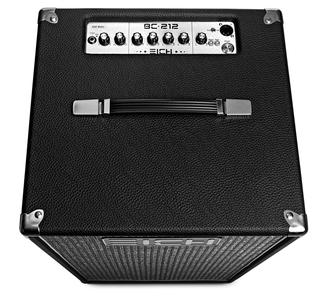 Der BC112 Combo mit 300 Watt ist mit unserem neu entwickelten EICH 12" Ceramic-Basslautsprecher bestückt, der in Verbindung mit der effektiven Kalibrierung des Gehäuses einen beeindruckenden Tiefbass bietet. Ebenfalls neu ist der 4 CT1 Membran-Mittelhochtöner mit einem Ceramic Magnetsystem. In einem angekoppelten Volumen überzeugt er zum einen mit seiner tiefen Einsatzfrequenz, zum anderen mit seinem sehr glatten Frequenzverlauf und bietet selbst jenseits der 10 KHz einen enormen Schalldruck für seidige Höhen. Alle Combos besitzen einen zusätzlichen Speakon® Combo Anschluss für den Betrieb einer Zusatzbox. Der interne Speaker kann wahlweise abgeschaltet werden. An der Rehearsal- Section kann über den Phone-Out ein Kopfhörer angeschlossen und über den AUX-In ein Musiksignal eingespeist werden. Der BC112 kann durch einstecken der am Gehäuseboden befindlichen Edelstahl-Stütze in eine Monitor-Position gekippt werden.   Extremely lightweight Classic grill cloth High quality ceramic speaker TE12D Switching power supply Poplar plywood housing Taste Filter 4-band EQ pre/post DI out 4 CT1 cone-driver External Speakon speaker jack Combo Speaker Off switch AUX-In Headphone Out Specifications Model: BC112 Configuration: 1 x 12 TE12D-4 Preamp: solid state preamp with gain, taste, lo, lo-mid, hi-mid, hi, master volume controls, mute switch, DI pre/post, XLR balanced DI out, 1 x effects loop, tuner out, line out, line in Power Amp: Class D amplifier, 300 w / 4 ohms Power supply: switching power supply Tweeter: 4 CT1 cone-driver Freq. Response: 40-19.000 Hz Dimensions: (W x H x D): 44 cm x 45 cm x 35 cm / 17" x 18" x 14" Weight: 14.1 kg / 31.06 lbs Option: Cover