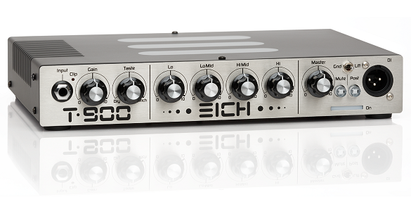 Der neue EICH T-1000Classic ist extrem klein in den Abmessungen, aber ganz groß im Sound. Durch die Verwendung hochwertigster Bauteile deckt das kompakte Klangwunder alle Frequenzbereiche ab und überzeugt mit kraftvollem Grundsound. Die exklusiven Features in Verbindung mit unserer neuen ultralinearen High-End Eingangsstufe definiert neue Maßstäbe in dieser Amp-Liga. Durch die effektiven Klangregelmöglichkeiten werden alle Stilrichtungen hervorragend übertragen. Die T-Serie besticht durch ihre Vierband-Klangregelung, mit der auf einfache Weise eine Vielzahl unterschiedlicher Sounds eingestellt werden kann. Der »Taste«-Regler erlaubt es, das Timbre des Instruments zu charakterisieren. In Mittelstellung verhält sich der Ton neutral. Dreht man nach links, wird Tiefbass herausgefiltert und charaktervolle Mitten werden hervorgehoben. Der ultimative Fretless-Regler. Im Uhrzeigersinn gedreht, werden die oberen Frequenzen abgemildert, was einen pumpenden Basssound erzeugt. Effectweg, Tuner Out, Line Out, Line In und drei Speakon® Ausgänge sowie ein DI mit Pre/Post-Schalter und Ground Lift-Schalter zeigen die vielfältigen Anschlussmöglichkeiten auf. Ein flüsterleiser, luftstromoptimierter Lüfter mit temperaturabhängiger, analoger Steuerung im T-1000 lassen den Amp auch bei Vollast immer Cool bleiben. Mit seinen magnet fix pins fixiert sich der T-1000 sicher auf den AmpFixing-Schienen unserer Cabinets. Ideal zum Traveling around the World zeigt sich der Spannungswahlschalter, mit dem zwischen 230 V und 115 V umgeschaltet werden kann. Der T-1000 ist außerdem mit dem neu entwickelten Kompressor ausgestattet, der feinste Dosierungen ohne Pegeleinbruch erlaubt. Zudem kann zwischen einer langen oder kurzen Attack-Zeit umgeschaltet werden, was weitere beeindruckende Klangvariationen ermöglicht. Effect Mix und Line In können bequem vom Frontpanel aus eingestellt werden. Außerdem steht ein Fußschalter-Anschluss für die Mute- und Compressor-Funktion zur Verfügung. Zusätzlich können zur Erweiterung der Klangregelung je ein Boost-Schalter für Bass und Höhen aktiviert werden. Das Ergebnis ist eine beeindruckende Live-Performance bei unschlagbarem Leistungsgewicht. Mit der getrennt regelbaren 2 x 500 Watt oder 1 x 1000 Watt starken Digitalendstufe des T-1000 kann man so ziemlich alle Bühnen der Welt entspannt mit Bass versorgen. Mit der EICH T-Serie verbinden sich enorme Kraft und elegante Leichtigkeit zu einer völlig neuen Verstärkergeneration.