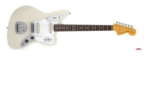 Model Name: Johnny Marr Jaguar®, Rosewood Fingerboard, Olympic White Series: Artist Color: Olympic White Body Body Material: Alder Body Finish: Lacquer Body Shape: Jaguar® Neck Neck Material: Ahorn Neck Finish: Lacquer Neck Shape: Custom Shape Based on Johnny's '65 Jaguar® Guitar Scale Length: 24" (610 mm) Fingerboard: Rosewood Fingerboard Radius: 7.25" (184.1 mm) Number of Frets: 22 Fret Size: Bünde im Vintage-Stil String Nut: Sattel aus synthetischem Knochen Nut Width: 1.650" (42 mm) Position Inlays: Punkt-Positionseinlagen Truss Rods: Vintage-Style Heel Adjust Truss Rod Nut: Vintage-Style Slotted Neck Plate: Vintage Style 4-Punkt Electronics Bridge Pickup: Custom-Wound Bare Knuckle® Johnny Marr Neck Pickup: Custom-Wound Bareknuckle® Johnny Marr Controls: Master Volume, Master Tone Pickup Switching: 4-Weg Klingenschalter: Position 1. Steg-Pickup, Position 2. Steg- und Hals-Pickups (parallel geschaltet), Position 3. Hals-Pickup, Position 4. Hals- und Steg-Pickups (seriell geschaltet) Pickup Configuration: SS Hardware Bridge: Jaguar Bridge with Mustang Saddles and Vintage Style "Floating" Tremolo Tailpiece Hardware Finish: Chrom Bridge Cover: verchromte Stegabdeckung inklusive Tuning Machines: Vintage Style Stimmmechaniken Pickguard: 3-Ply White Auxiliary Switching: 2 Slide-Switches: Universal Bright Switch; Bright Switch for Blade Position 4 Miscellaneous Strings: Fender® USA 250R, NPS, (.010-.046 Gauges) Unique Features: Custom Wound Pickups, Artist Signature on front of headstock, Nylon Bridge Post Inserts for improved stability; Nylon Insert in Trem Arm Sleeve to prevent arm swing Included Accessories: Strap, cable, set of flatwound strings Teilenummer: 011-6400-705