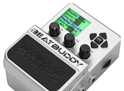 Complete Creative Control BeatBuddy von Singular Sound ist die erste Hands free Drummachine der Welt. In einem kompakten Effekt-Style Pedal Gehäuse bietet er über nur einen Fußtaster eine genial einfache, freihändige Kontrolle über Beats, Fills, Überleitungen, Outros oder Tap Tempo und ist somit der ideale Partner nicht nur für Gitarristen und Bassisten. Sein gut ablesbares, mehrfarbiges Display informiert über den aktuellen Song Part und verfügt nebenbei über ein optisches Metronom. Seine von echten Studio-Schlagzeugern eingespielten, unquantisierten MIDI Loops und Multi-Layered Sounds inklusive 15 Dynamikstufen übertreffen herkömmliche Drumcomputer bei weitem und erreichen eine beeindruckende Authentizität. Eine mitgelieferte, prall gefüllte 4GB SD Karte beinhaltet 200 Songs und 10 Drumkits. Zusätzliche Songs und Kits stehen online zur Verfügung und können über die integrierte USB Schnittstelle schnell und einfach an den BeatBuddy übertragen werden. Für die Late Nite Jam lassen sich externe Instrumente anschließen und über den integrierten Kopfhörerausgang abhören. Ein optional erhältlicher Fußschalter erweitert die Funktionalität des BeatBuddy um Zugriff auf Accent und Pause. Zur Synchronisierung mit anderem MIDI Equipment ist zusätzlich ein optionales MIDI Sync-Kabel erhältlich. Features: Pedal Drumcomputer Nicht quantisierte Aufnahmen von echten Studio-Schlagzeugern Multi-Layered Sounds inklusive 15 Dynamikstufen Zahlreiche unterschiedliche Musikstile 200 editierbare Song Settings Mehrfarbiges Display (jeder Songteil mit eigener Farbe) 10 Drumkits Tap Tempo Intro, Fills und Outros Visuelles Metronom Stereo Ein- und Ausgänge (6,35 mm Klinke, Integration in Pedalboard möglich) Kopfhörerausgang (3,5 mm Stereoklinke) Mini USB Anschluss SD-Karten Slot Kostenlose Editor Software (freier Download unter mybeatbuddy.com) MIDI Sync über optionales MIDI Sync Breakout Kabel (nicht mitgeliefert) Optionaler 2-fach Fußschalter für erweiterte Möglichkeiten (nicht mitgeliefert) Robuste Gehäuse aus eloxiertem Aluminium Inklusive 9V-Netzteil, 4 GB SD-Karte und USB Kabel Abmessungen: 94 x 158 x 63,5 mm Gewicht: 640 g