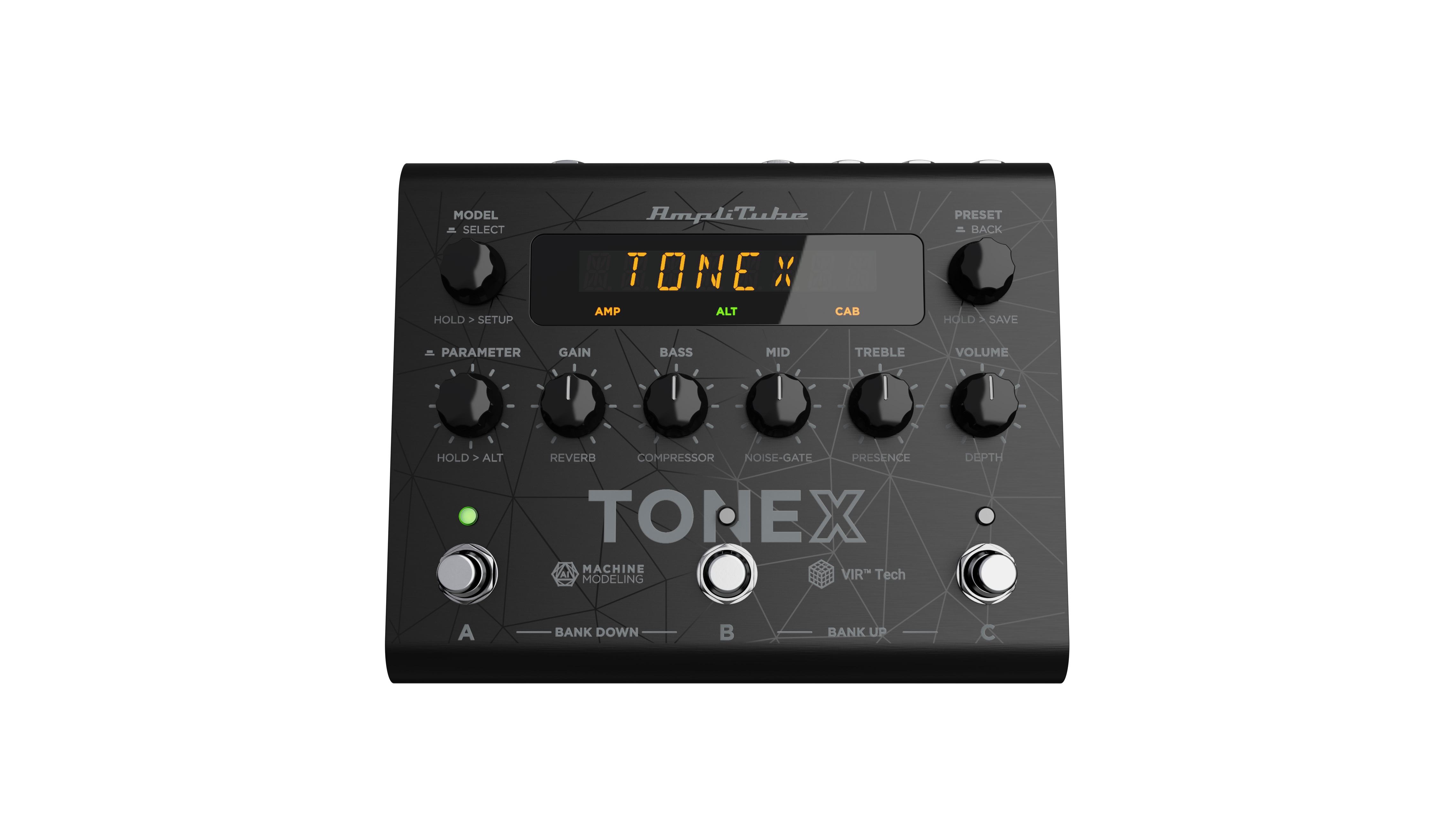 AmpliTube TONEX ist eine Serie von Hardware- und Softwareprodukten für Gitarre und Bass entwickelt mit dem Ziel, dem Benutzer die Möglichkeit zu geben, jedes beliebige Gitarren-Rig auf der Welt zu erfassen/erstellen und zu spielen. TONEX Pedal ist das ultimative Verstärker- und Verzerrer-Stompbox Pedal mit IKs bahnbrechender AI Machine Modeling Technologie. Diese ermöglicht es, Hunderte von mitgelieferten Tone Model Rigs mit selbst erstellten Rigs oder mit einer unbegrenzten Anzahl von Usermodels aus der IK ToneNET-Community zu spielen. Jedes beliebige Rig ist mit der dazugehörigen Software TONEX Machine Modeler modellierbar. Es lässt sich das Verhalten von Verzerrer/Overdrive/Fuzz/Boost/Kompressor/EQ-Pedale, Verstärker und Boxen oder alles zusammen als exaktes Tone Model erfassen und später wieder aufrufen und spielen, sowohl in TONEX Pedal als auch im AmpliTube TONEX Plug-in. Mit TONEX Pedal lassen sich auch bestehende Presets mit zusätzlichen DSP-Prozessoren wie Noise Gate, Kompressor, Tone Eq und Reverb nachbearbeiten. Zum Tausch des Lautsprechermodells lassen sich beliebige Drittanbieter IR´s oder das integrierte VIR-Modul mit 2-fach anpassbarer Mikrofonplatzierung verwenden. Kostenlos im Lieferumfang enthalten sind die Gitarrenamp- und Effektsimulationssoftware AmpliTube 5 sowie TONEX MAX, das Tool zum Erstellen, Abspielen und Weitergeben von Klangmodellen. Features:
