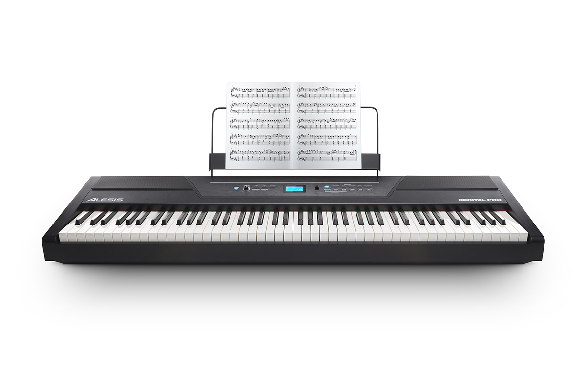 Alesis Recital Pro ist ein funktionsbeladenes Digital-Piano mit 88 Hammer-Action Tasten, welche in der Empfindlichkeit eingestellt werden können. Recital Pro bietet nicht nur eine authentische Reproduktion eines Konzertflügels, sondern verfügt über 12 eingebaute hochwertige Instrumente von verschiedenen Klavieren bis hin zu Streichern. Durch die einfache Kombination der verschiedenen Sounds können neue und volle Klänge erzeugt werden. Die Anpassung erfolgt hierbei komfortabel über die Bedienelemente und das integrierte Display. Ebenso ist das Splitten der Klaviatur in verschiedene Klänge möglich. Um den Klang weiter zu verfeinern, können einstellbare Modulation, Reverb und Chorus hinzugefügt werden. Mit den eingebauten leistungsstarken 20 Watt Lautsprechern und einer maximalen Polyphonie von 128 Noten liefert Recital Pro einen ultra-realistischen Sound mit einem authentischen Spielerlebnis.