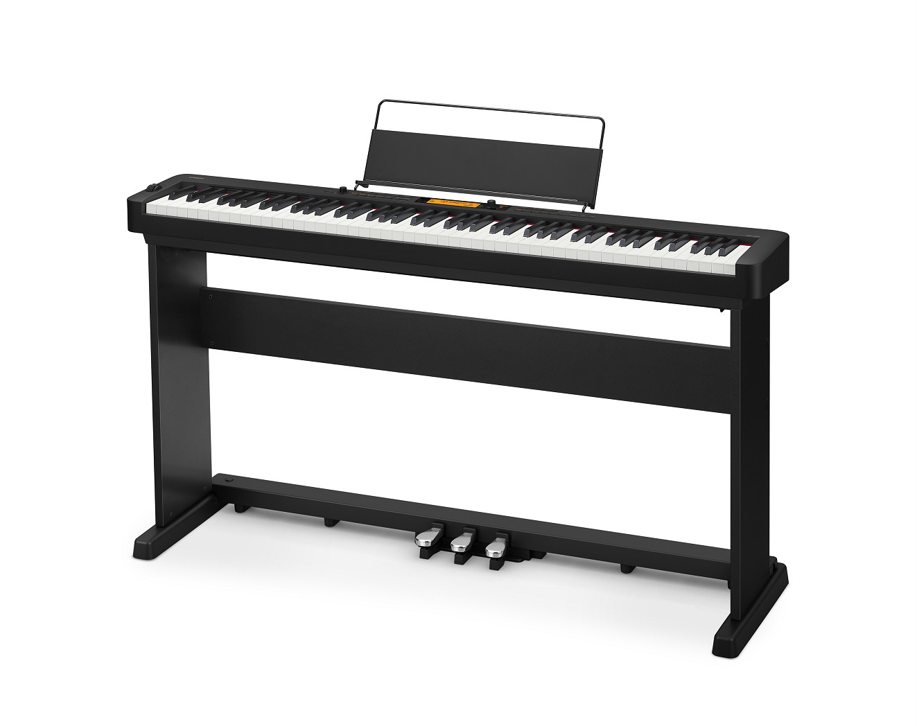 Das CDP-S360 ist mit einer gewichteten 88-Tasten-Tastatur ausgestattet und eignet sich perfekt für ein breites Spektrum an Musikgenres. Insgesamt 200 Rhythmen und 700 hochwertige Klangfarben sind standardmäßig integriert, von Tasteninstrumenten wie Flügel, Orgeln und Cembali bis hin zu Streichern, Blasinstrumenten und Schlaginstrumenten. Das CDP-S360 ist mit dem Stand CS-470P mit integriertem 3-fach Pedal oder dem 3-er Pedal SP-34 (beide separat erhältlich) kompatibel und eignet sich sowohl zum Üben als auch zum Spielen. Über die kostenlose CASIO Music Space App für Smartphone und Tablet kann das Instrument gesteuert und für Übungseinheiten werden. Mit dem WU-BT10 Wireless MIDI & Audio Adapter (separat erhältlich) können Sie Ihr Smartphone oder Tablet sogar kabellos mit Ihrem Digitalpiano verbinden.