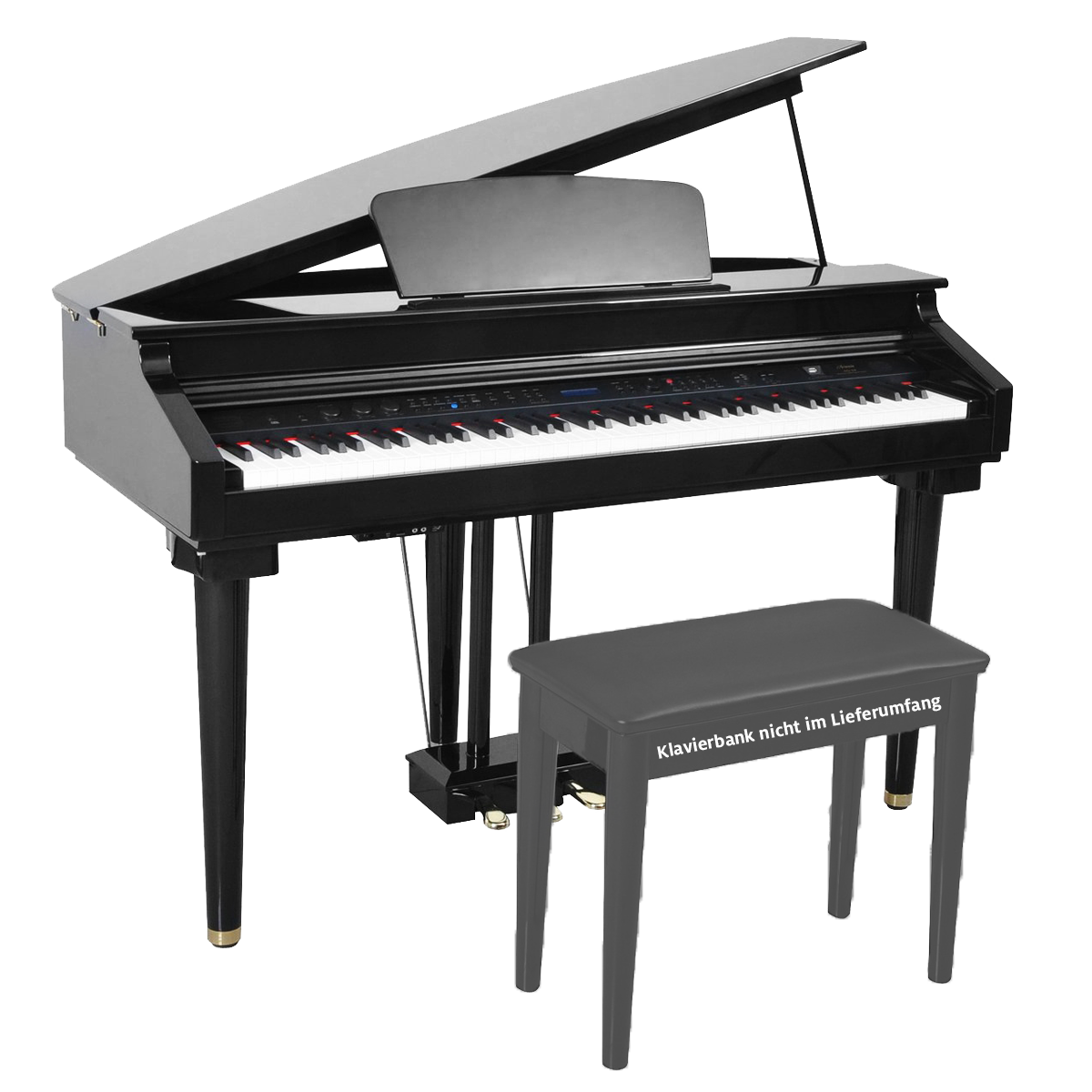 Musik/Aufnahme Metronom/ Taktarten 10 Taktarten + 100 Rhythmen, Tempo und Lautstärke einstellbar Rekorder USB Speicher: MP3/WAV Aufnahme und Wiedergabe, 16-Spur MIDI, A-B Loop; Intern: MIDI 10 Songs, 2 Spuren max. 90,000 Noten Lesson Funktion 558 Titel insgesamt. Titel von Czerny, Burgmüller, Beyer, Bach, Chopin und Hanon (inkl. Notenheft); Titel von Alfred ohne Notenhefte. Zusätzlich Fingertraining mit 4 Skalen (Dur, n.Moll, h.Moll, m.Moll), 2 Arpeggien-, 2 Kadenz- und 2 Akkordübungen in jeweils allen Tonarten mit Bewertungsfunktion Piano Music Songs 29 Concert Magic Songs 176 Demosongs 32 Features Display 128 x 64 Pixel OLED Display Bluetooth Bluetooth (Ver. 4.0; GATT kompatibel), konform mit der Bluetooth Low Energy MIDI Spezifikation; Bluetooth Audio Registrationen ja, 16 Speicherplätze USB Funktionen Song/Registrierung laden/speichern, Verzeichnis erstellen, Umbenennen, Löschen, Formatieren Sonstige Features Key Transpose, Song Transpose, Tone Control (inkl. User EQ), Lautsprecher Lautstärkeregler, Kopfhörer Lautstärke , Line In, Line Out Lautstärke, Audio Recorder Gain, Tuning, Damper Hold, LCD Kontrast, User Speicher, Werkseinstellung, Lower Octave Shift, Lower Pedal On/Off , Split Balance, Layer Octave Shift, Layer Dynamics, Dual Balance, MIDI Kanal, Send PGM#, Local Control, Transmit PGM#, Multi Timbral Modus, Channel Mute, Auto Power Off Soundsystem Soundsystem 13 cm x 2, 8x12 cm x 2 (ONKYO) Leistung 2 x 20W (ONKYO) Leistungsaufnahme 20W Maße Höhe in cm 89 cm [Notenpult flach]; 104 cm [Notenpult oben]; 136,5 cm [Deckel voll geöffnet] Breite in cm 147.5 Tiefe in cm 87 Gewicht in kg 80