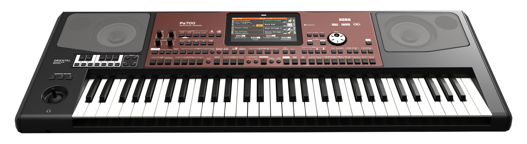 Das Pa700 ist ein flexibles Keyboard, das neben seinem großartigen Sound und seinem herausstechenden Design auch viele innovative Features zu bieten hat, die das eigene Spiel auf die nächste Stufe heben. Unter den mehr als 1.700 Werkssounds finden sich beispielsweise ein hochwertig gesampelter Konzertflügelsound mit Dämpfer- und Korpusresonanzen, als auch eine digitale Zugriegelorgel mit authentischen Effekten. Mit über 370 vorbereiteten Styles bietet der Pa700 musikalische Begleitungen für fast jede erdenkliche Stilistik. 4 Variationen, 4 Pads sowie Intros, Fills und Endings pro Style garantieren ein abwechslungsreiches Spielerlebnis. Das neue, kapazitive TouchView Display lässt sich wie ein Tablet PC bedienen und spricht auf die leichteste Berührung an.Über die Audio-Eingänge lassen sich wahlweise externe Audioquellen, ein Mikrofon und sogar eine Gitarre anschließen. Für Gesang und Gitarre stehen spezialisierte, hochwertige Effekte wie Hall, Chorus und detailliert nachgebildete Gitarrenverstärker bereit.Die neuartige KAOSS FX Funktion ermöglicht es, die gespielten Songs und Styles durch das Berühren des Displays in Echtzeit zu manipulieren. Vom subtilen Überblenden zwischen Variationen und Drum Kit-Typen oder dezentem Mischen der Begleitsounds über das Verbiegen laufender Rhythmen bis hin zu radikalen Verzerrungs-Effekten, Tape Delays und Arpeggios im DJ-Stil bietet diese Funktion vielfältige Möglichkeiten, um das eigene Spiel um professionelle Effekte zu bereichern.Das Pa700 ORIENTAL bietet die gleichen Ausstattungsmerkmale wie das Pa700 und wird durch ein Miniatur-Keyboard auf der linken Gehäuseoberseite ergänzt, mit dessen Hilfe sich Viertelton-Skalen erstellen und aufrufen lassen. Außerdem bietet es zusätzliche authentische Klangfarben und Rhythmen aus dem Bereich der orientalischen Musik.