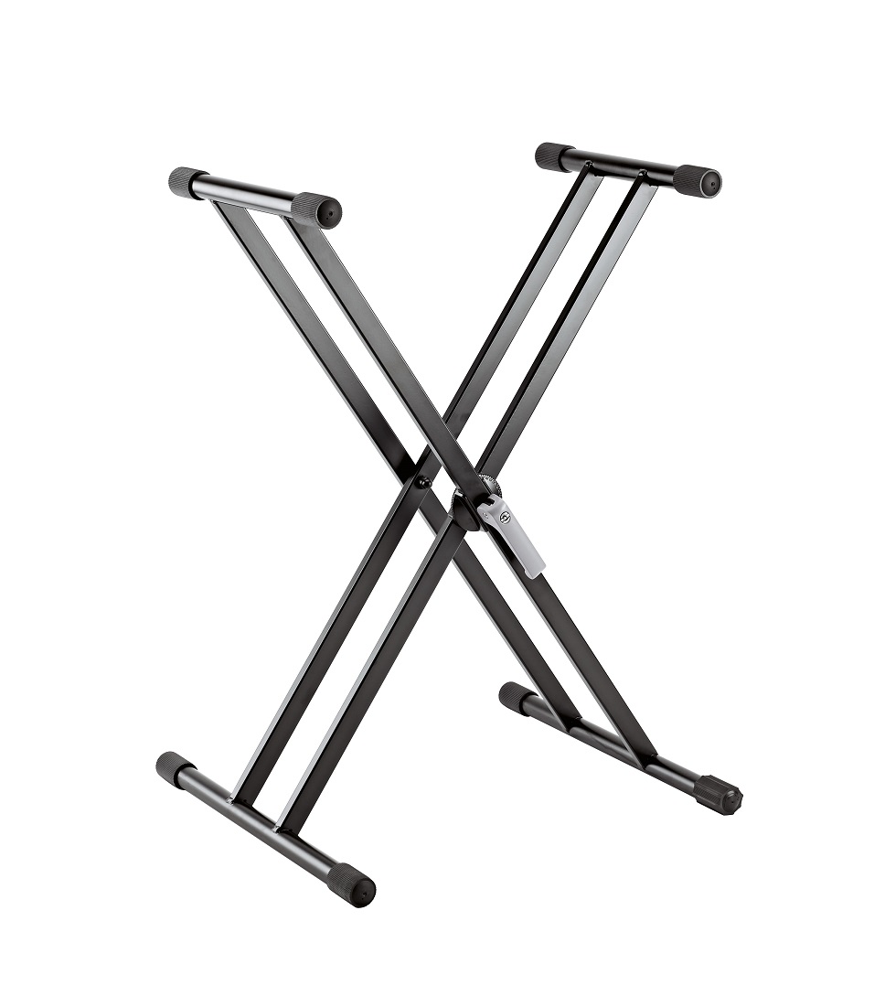 Der KSX 2 ist ein stabiler, standfester Keyboardständer mit doppelter X-Stütze und 65 kg Belastbarkeit. Die Höhe lässt sich mit der Schnellverriegelung bequem bis 90 cm einstellen. Die schwarz pulverbeschichtete Stahlkonstruktion besitzt verstärkte Nahtstellen für höchste Haltbarkeit und langlebige, rutschfeste Endkappen.
