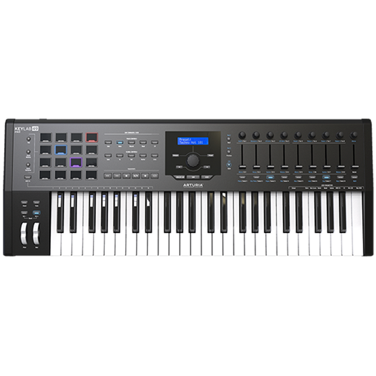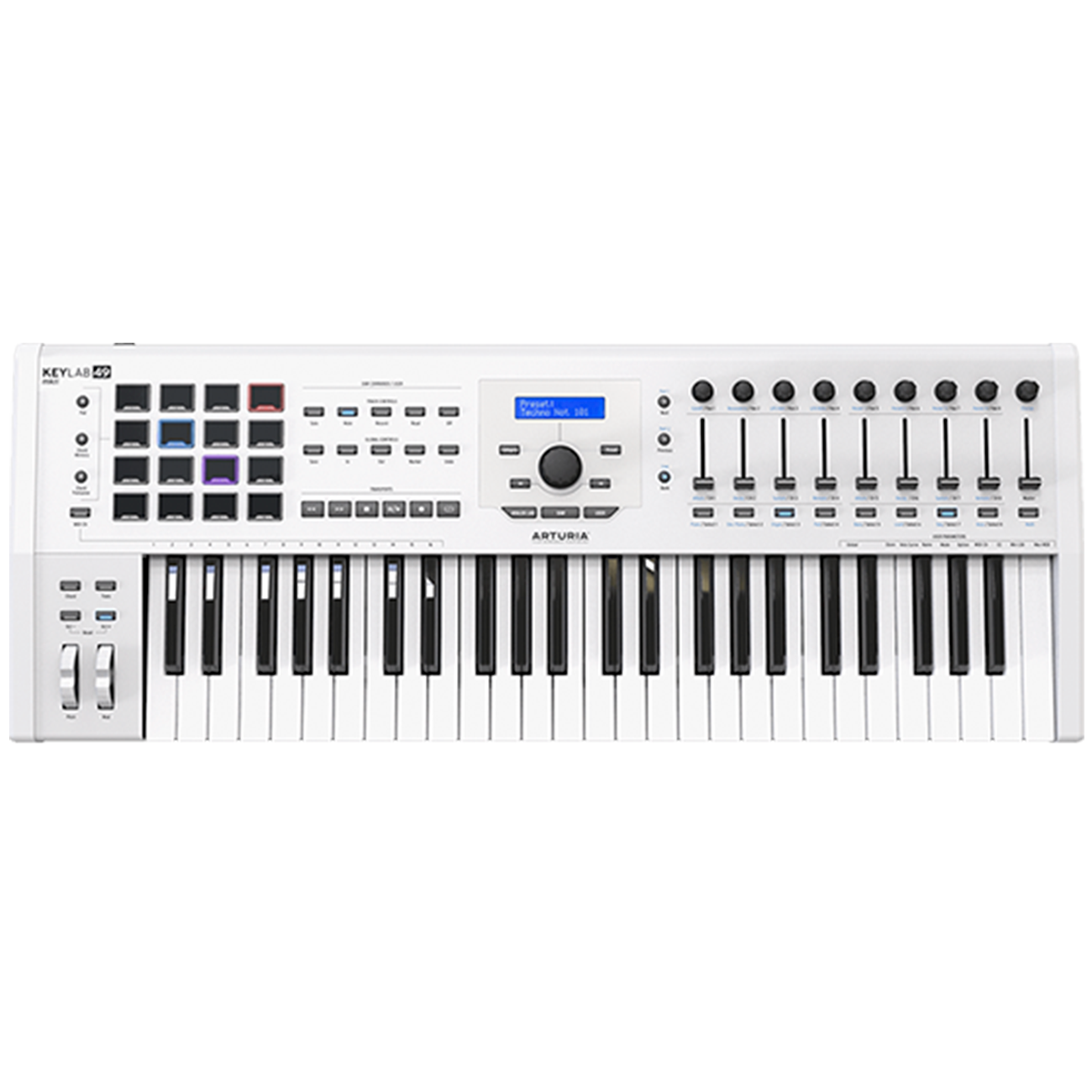 Arturias KeyLab MkII stellt einen Quantensprung in Sachen umfassender Kontrolle, verlässlicher Qualität und spielerischer Ausdruckskraft dar. Der Premium-MIDI-Controller besticht mit seiner vom MatrixBrute bekannten und hervorragend spielbaren Tastatur, seinem Aluminiumgehäuse, dem umfangreich anpassbaren Interface, 16 farbig beleuchteten Performance-Pads, 9 großen Fadern, 9 Drehreglern, gleich 5 Expression Control Eingängen, 4 CV Ausgängen, einer smarten Kategorienfunktion und natürlich der MIDI- sowie MIDI-USB-Konnektivität. Fester Bestandteil des Gesamtpakets ist darüber hinaus ein beeindruckendes Softwarebundle: Arturias virtuelles Piano Piano V2, die riesige Keyboard-Soundbibliothek Analog Lab 3 sowie eine Lizenz für Ableton Live Lite.