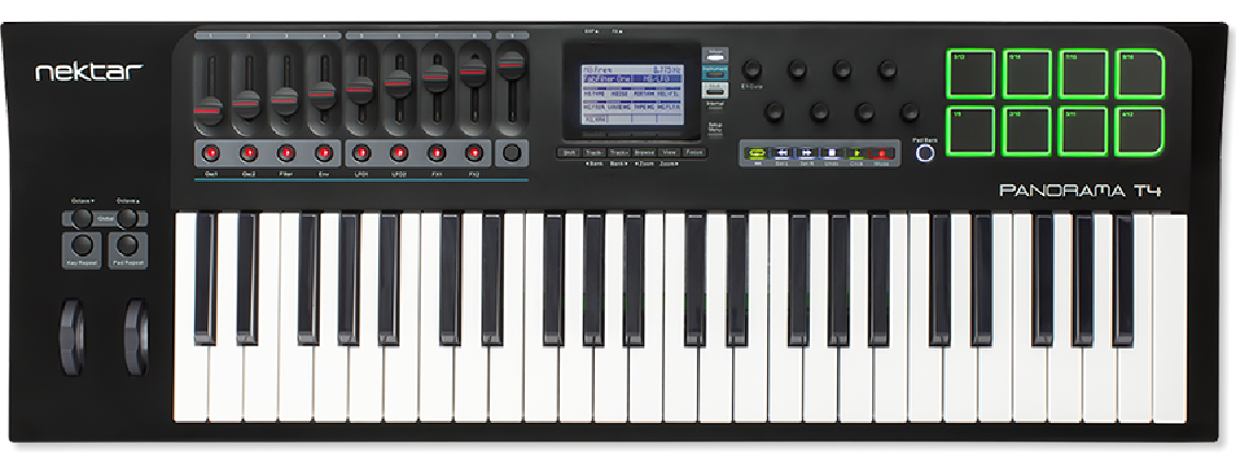 Erlebe einen völlig neuen Workflow Das nektar Panorama P4 ist ein erstklassiges MIDI/USB Masterkeyboard mit halbgewichteten Tasten für ein angenehmes, dynamisches Spielgefühl. Darüber hinaus ist es die umfangreichste Kontrollzentrale für jede gängige DAW, egal ob Cubase, Nuendo, Bitwig Studio, Logic, Studio One oder Reason. Panorama bietet eine einzigartige Integration in die vielfältigen Spiel- und Mischfunktionen moderner Musiksoftware, welche herkömmlichen Masterkeyboards um Lichjahre voraus ist. Unmusikalische Notwendigkeiten wie Maus und Keyboard werden fast überflüssig. Die Musik entsteht völlig organisch direkt am Musikinstrument. Songnavigation, Mixing, Effekte, virtuelle Instrumente alles lässt sich direkt über Panorama steuern. Das hochauflösende TFT Display bietet immer den perfekten Überblick über alle Zuweisungen, Parameter und den aktuellen Status. Ein 100 mm Alps Motorfader folgt automatisch der Trackauswahl und bewegt sich in Echtzeit zur Automation des ausgewählten Kanals, jederzeit bereit für dynamische Eingriffe in die Mixautomation. Nektar Panorama unterstützt Deinen musikalischen Workflow, wie Du es noch nie erlebt hast. Features: