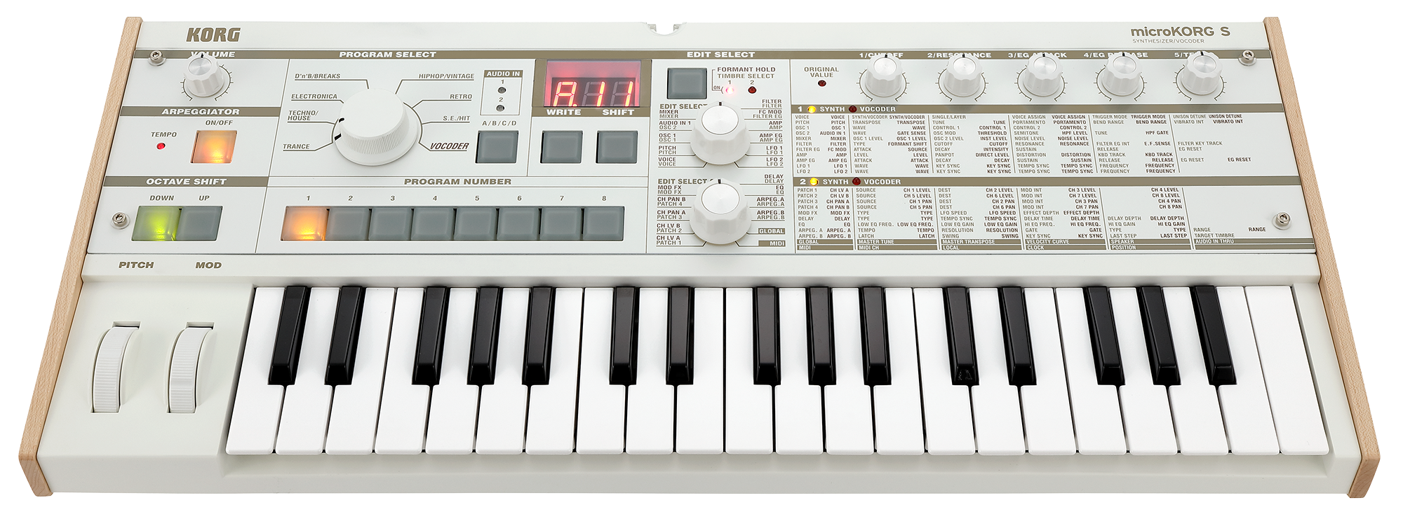 512 Factory Programs (4 banks of 128) and 512 fully editable User Programs with 2 layers (2 separate sounds) in each Program
