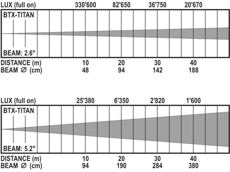 - BEAM: 2,7°11°, max. 82.650 Lux bei 20 m