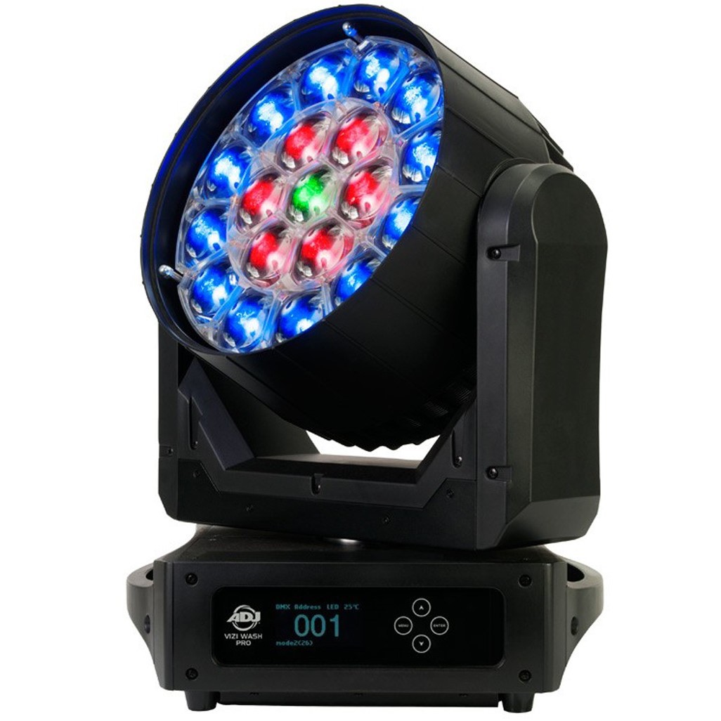 Als Teil der ADJ Vizi-Serie professioneller Moving Heads ist der Vizi Wash Pro ein leistungsstarker Wash-Effekt mit 570 W und einem variablen Zoom. Er verfügt über 19 x 30-Watt RGBW-LEDs (4-in-1, rot, grün, blau und weiß) von Osram mit eine Betriebsdauer von 50.000 Stunden. Für mittelgroße bis große Bühnen erzeugt er spektakuläre farbige Wash-Effekte. Er verfügt über einen motorbetriebenen Zoom von 5 bis 50 Grad, eine 3-Zonen-Ringsteuerung mit atemberaubenden Farbmakros, 3 DMX-Kanal-Modi, 6 Dimmungskurven-Modi und ein berührungsempfindliches Bedienfeld mit 4 Schaltflächen und einem großen LED-Bildschirm. Leuchtquelle: