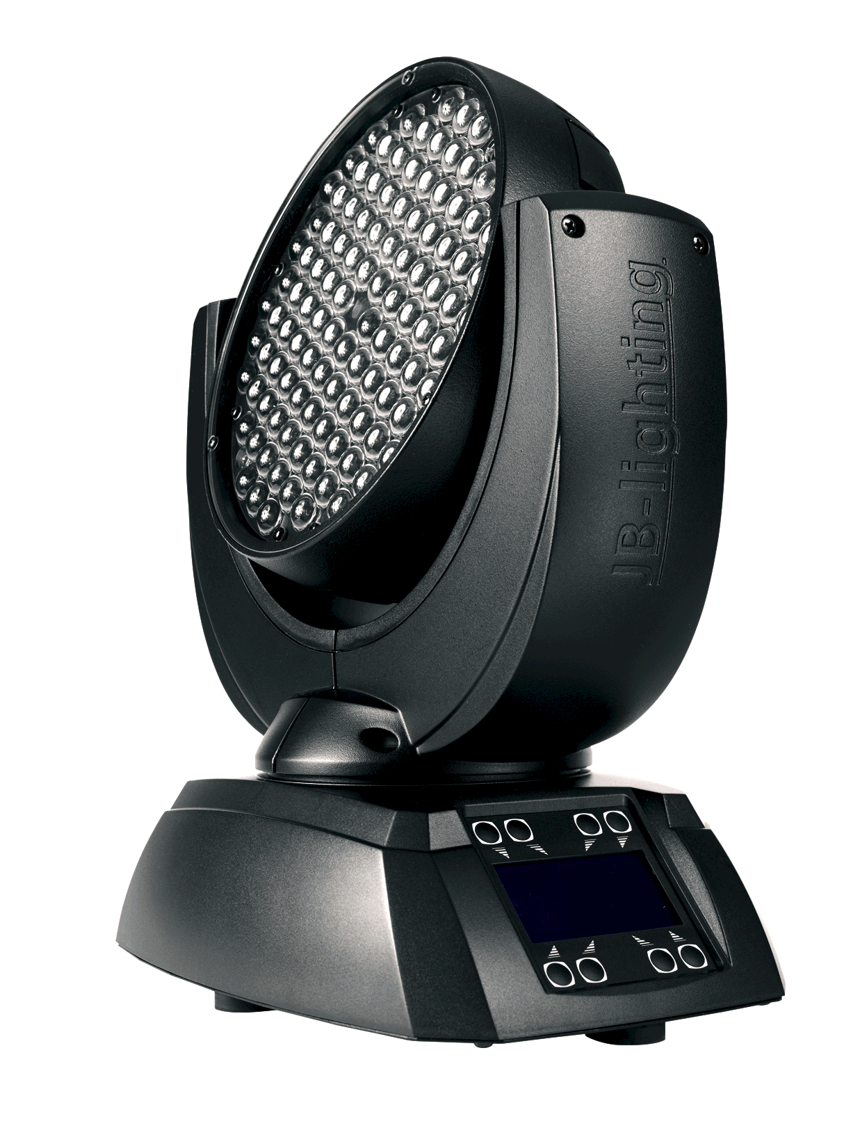 Mit dem JBLED A7 präsentiert JB-lighting die nächste Generation im Bereich Moving-Head mit LED-Bestückung und den gelungenen Nachfolger des VaryLED 3*84.Die Bestückung des JBLED A7 umfasst 108 Luxeon Hochleistungs-LEDs, die in außergewöhnlich engem Abstand zueinander platziert wurden und dadurch ein gleichmäßiges Farbmischverhalten ermöglichen. Mit der Auswahl und Anzahl der eingesetzten LEDs wird die Darstellung des maximalen Farbraums ermöglicht. Der JBLED A7 profitiert dabei von neuen Herstellungstechniken bei blauen und grünen LEDs.Im Vergleich zum Vorgänger erhöhte sich die Lichtausbeute um 40% bei blau und um nahezu 100% bei grün. Durch diese Entwicklung ist der JBLED A7 nicht nur das hellste Gerät in seiner Klasse, die Lichtausbeute bei weiß (gemischt aus rot, grün und blau) hat sich sogar verdoppelt.Einen großen Erfolg erzielte JB-lighting bei der Weiterentwicklung des optischen Systems. Da die derzeit auf dem Markt erhältlichen Optiken nicht zur Entwicklung eines Zoomsystems brauchbar sind, wurde ein neuartiges, hocheffizientes Linsensystem entwickelt. Die Abstrahlcharakteristik des Scheinwerfers zeigt einen klar definierten Lichtkegel, der mit einem konventionellen Washlight vergleichbar ist und nicht mehr den breiten diffusen Streulichtrand früherer Geräte zeigt.Der Zoombereich des JBLED A7 umfasst bemerkenswerte 8° -36° (8°-28° 1/2 Peak, 12 -36° 1/10 Peak)!Der JBLED A7 wird in vier unterschiedlichen Ausführungen erhältlich sein. Als Bühneneffektlicht gibt es den Scheinwerfer mit einer Standardbestückung von roten, grünen und blauen LEDs. Des Weiteren wird für Messe- und Frontlichtapplikation ein Gerät mit reinweissen LEDs in kaltweisser Farbtemperatur angeboten. Universell einsetzbar ist der JBLED A7 mit einer Bestückung aus zwei Drittel kaltweissen und einem Drittel amberfarbenen LEDs. Abgerundet wird das Lieferprogramm von einem JBLED A7, der ausschließlich mit warmweissen LEDs bestück ist und sich als Frontlicht für Bühnen und Theater eignet.Neben den bekannten Vorteilen der LED, die sich alle im JBLED A7 wieder finden, wie geringe Stromaufnahme, geringes Gewicht und geringe Wärmeabgabe, wurde beim Konzept des Scheinwerfers darauf geachtet, dass er äußerst geräuscharm arbeitet. Dies prädestiniert ihn für Theater- und TV-Anwendungen.