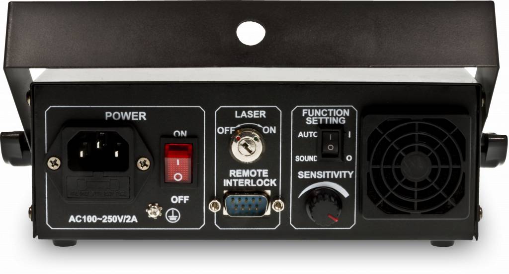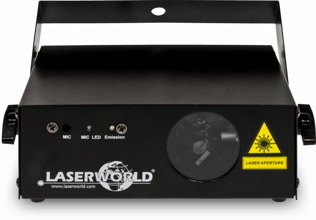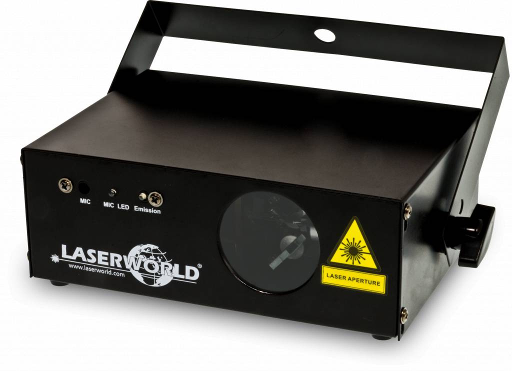 Das grüne DPSS Lasermodul mit einer Wellenlänge von 532 nm gewährleistet eine hohe Sichtbarkeit und Strahlkraft. Gleichzeitig weist der Projektor mit einem Strahldurchmesser von ca. 3 mm und einer Strahldivergenz von 1.5 mrad gute Strahlspezifikationen auf, besitzt High-Speed Schrittmotoren, 2-5 kpps und hat einen Scanwinkel von 30°. Etwa 50 vorinstallierte Basismuster, wie beispielsweise Ebenen, Tunnel, Gitter, Wellen usw. sind im Musikmodus verfügbar. Für den Musikmodus kann die Sensitivität des integrierten und regulierbaren Mikrofons angepasst werden. Auf der Rückseite dieses kompakten Gerätes befindet sich ein An-Aus- sowie ein Schlüsselschalter. Der Laserworld EL-60G ist eine sehr preisgünstige Lösung für Einsteiger und wird häufig in Bars, kleinen Clubs, bei privaten Parties und in Partykellern eingesetzt.