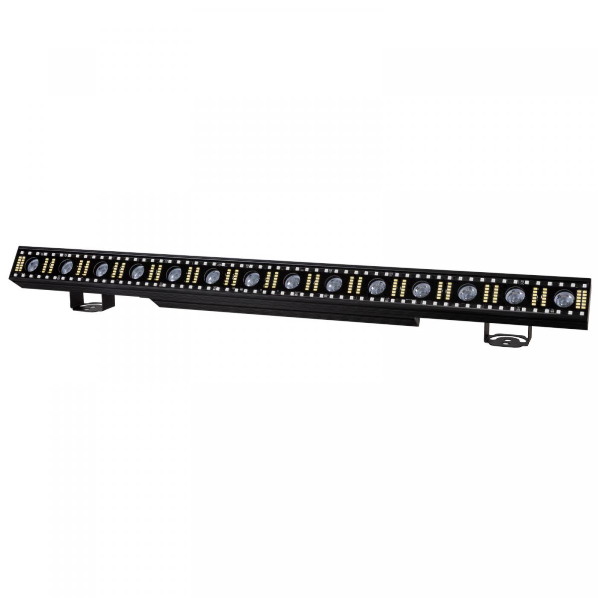 Leistungsstarker 3in1-LED-Lichtleiste von JB SYSTEMS, ausgestattet mit 13x3 Watt warmweißen LEDs, 120 RGB LEDs und 180 kaltweiße LEDs.