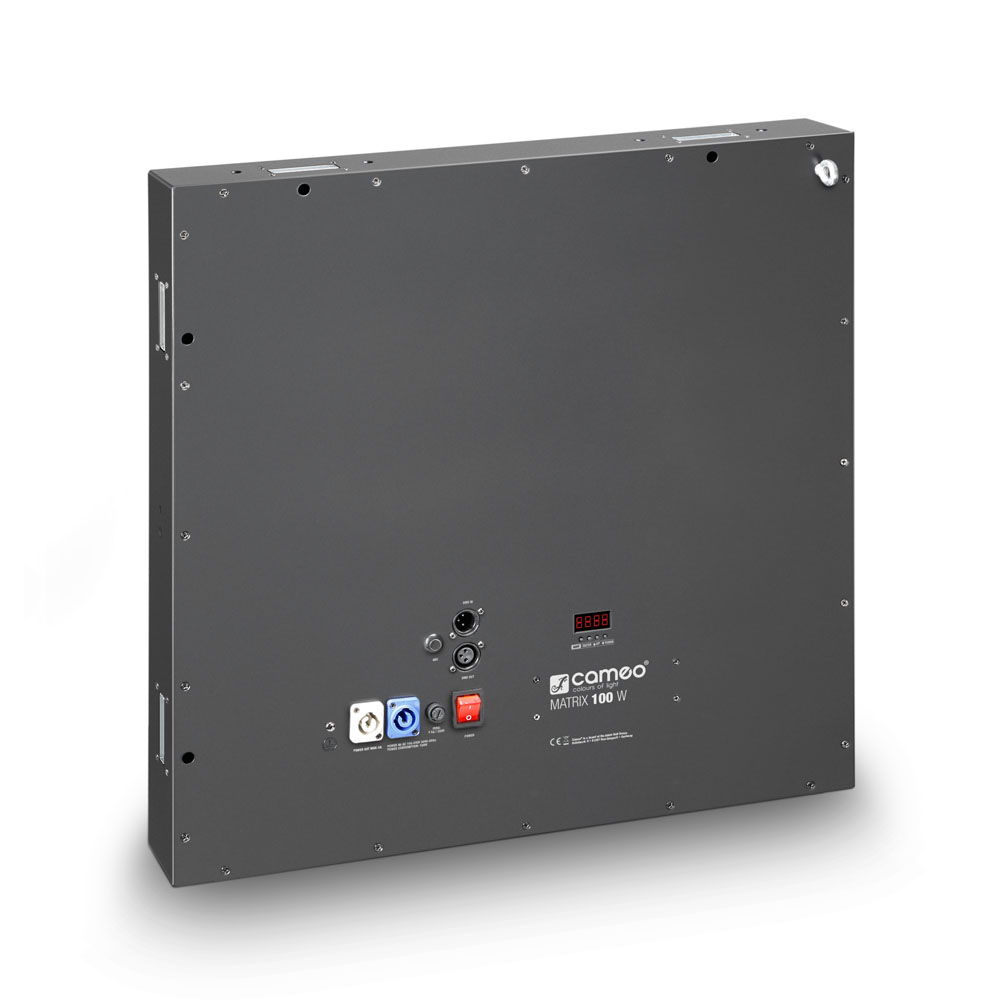 Das Cameo Matrix Panel sorgt mit 5 x 5 warmweißen 3 W LEDs und flackerfreien Lichtstrahlen spannende Blinder-, Chase- und Strobe-Effekte. Durch die leistungsfähige Single Pixel Control lassen sich Buchstaben, Zahlen und Mitteilungen perfekt darstellen. Mit versenkten Riegeln auf allen Seiten können Matrix Panels äußerst einfach zu großen, wirkungsvollen Lichtwänden verbunden werden. Das Matrix Panel besitzt vier DMX-Steuermodi, Klangsteuerungund vier wählbare Dimmerkurven. Es kann als Master, Slave und Standalone eingesetzt werden und arbeitet durch hocheffiziente Konvektionskühlung vollkommen geräuschfrei. Das ultraflache Metallgehäuse ist mit 3-poligen DMX- und blau-weißen Netzein- und Ausgängen, einem Display mit vier Knöpfen und einer Sicherheitsöse ausgestattet. Das Matrix Panel wird mit Montagebügel geliefert und arbeitet an allen Netzspannungen von 100 240 Volt.