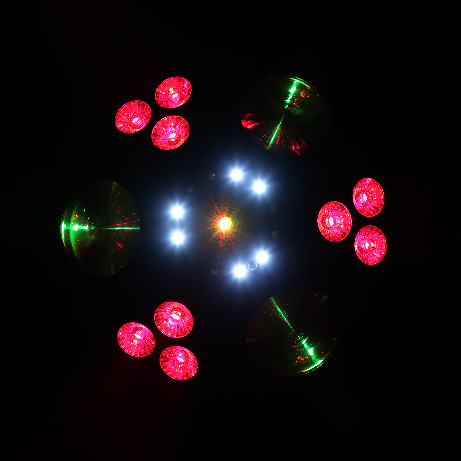 - LED-Flower Effekt: 84 x 0,75 W LEDs (RGBY) für dynamische Mehrstrahlmuster.