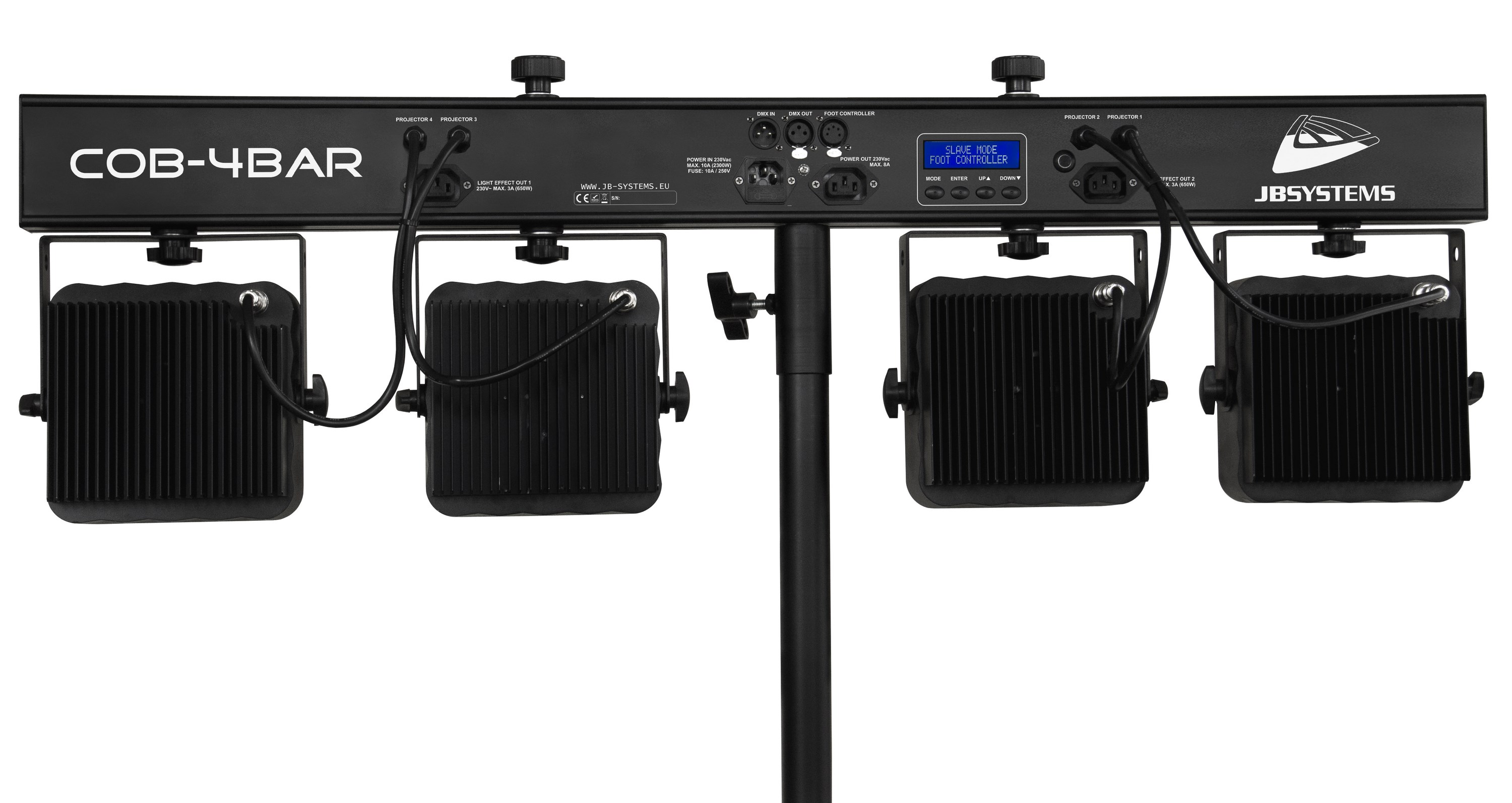 - Steuerung über unseren bekannten LEDCON-02 oder die optionale Fusssteuerung COB-4BAR FOOTCONTROL.