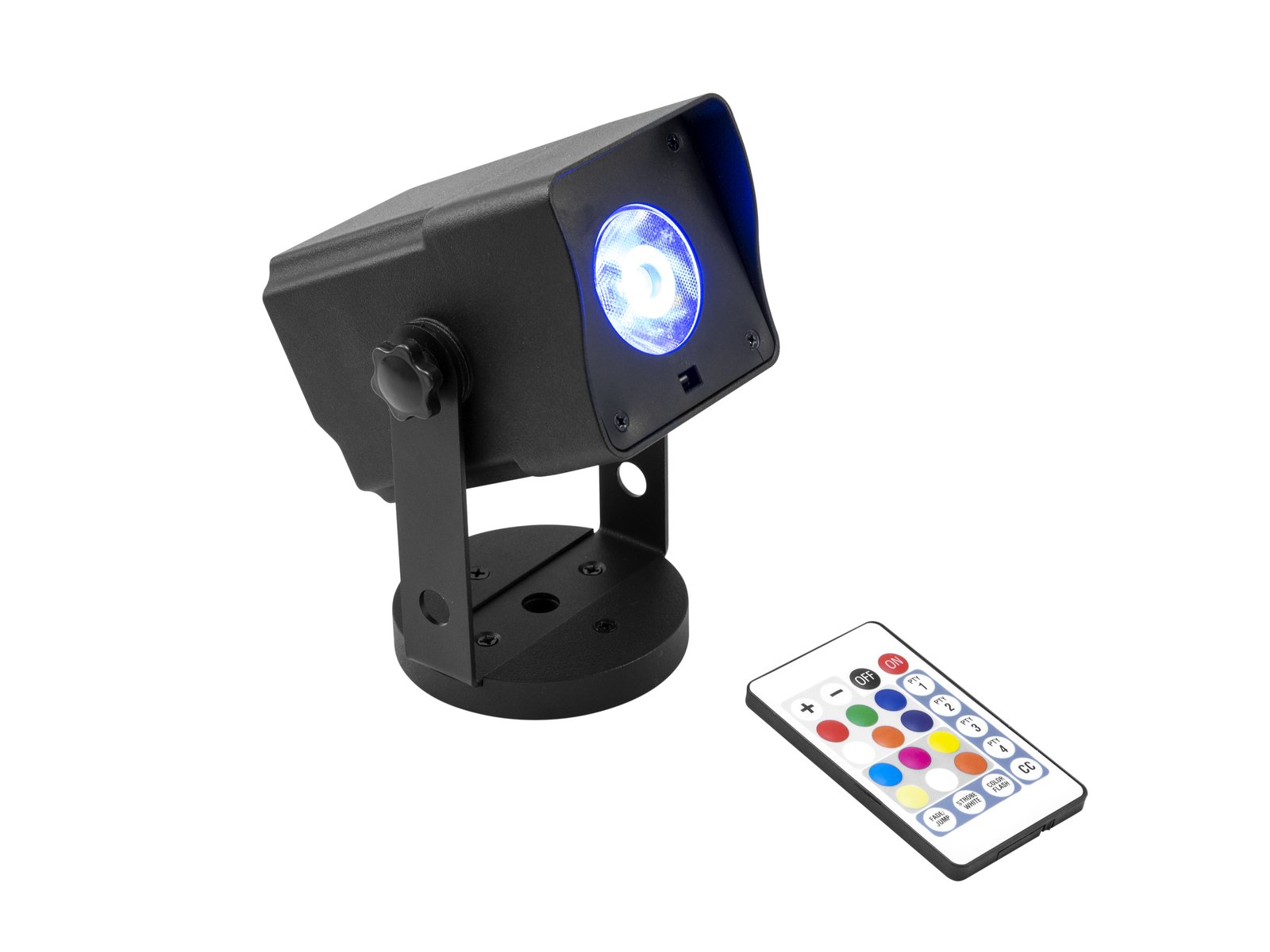 Zusätzliche Steuermöglichkeit über EUROLITE IR-7 Fernsteuerung, im Lieferumfang enthalten