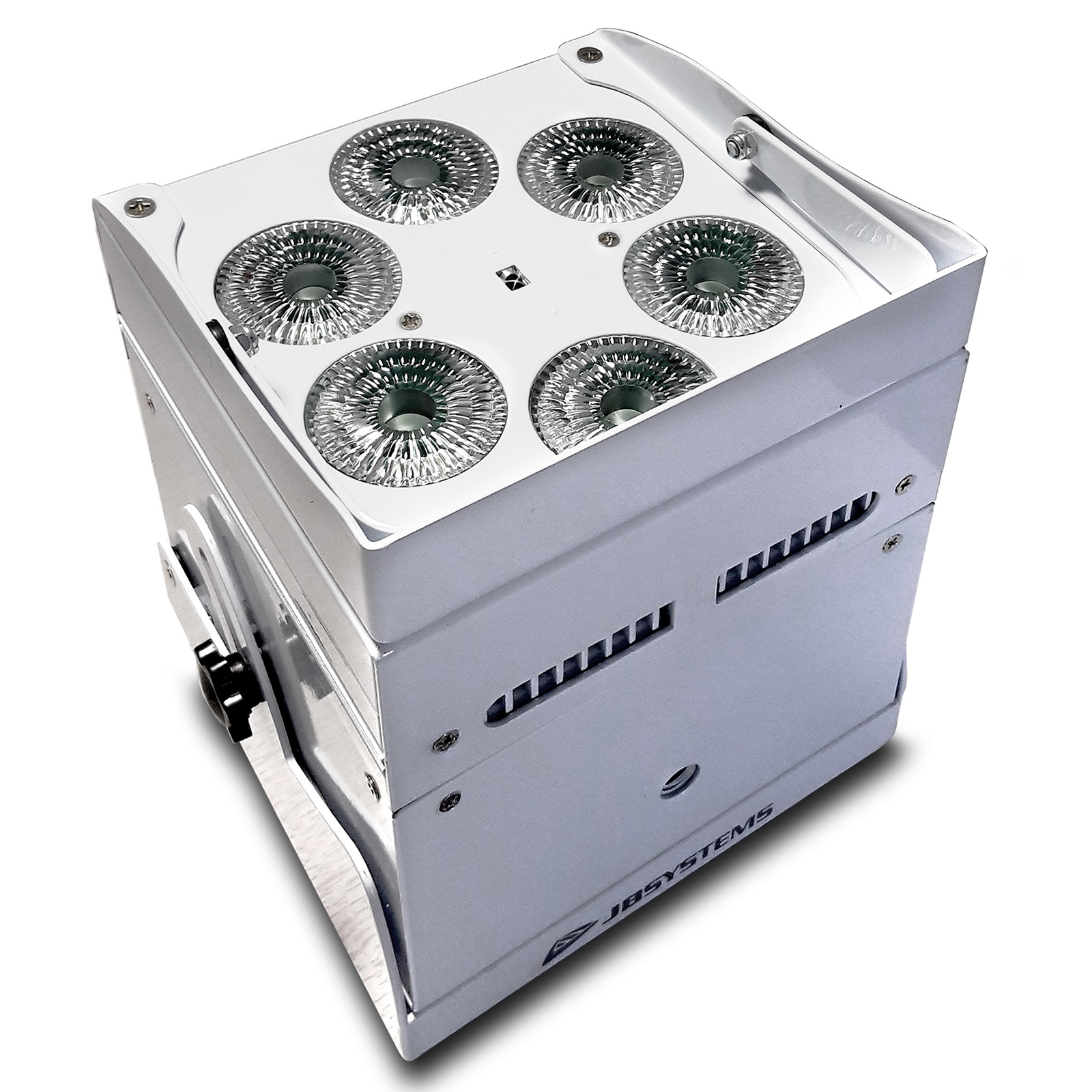 Akku LED Scheinwerfer 6 x 10 Watt RGBWA JB Systems - Accu Color Akku-betriebener LED-Projektor von JB Systems mit 6 Stück 10 Watt RGBWA LEDs und einem Abstrahlwinkel von 22°.
