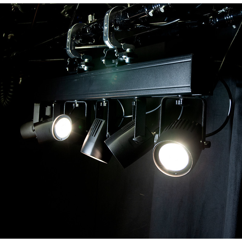 Die Saber Bar 6 ist ein Pinspot-System mit 6 LED Spots auf einer 1 Meter langen Leiste mit integrierten Anschlüssen für Strom und DMX. Jeder Spot verfügt, ähnlich wie der Saber Spot WW, über eine warmweiße 15W-LED (3100K) und einer ACL-Linse, die einen messerscharfen 5° Lichtstrahl erzeugt.