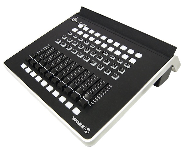Mit dem LS-Wing erweitert der spanische Hersteller WORK PRO seine LightShark-Serie. Das LS-Wing ergänzt die LightShark LS-1 und den LS-Core um zahlreiche Features. Neben seiner primären Funktion als Fader-Wing-Erweiterung, versteht sich das LS-Wing auf diverse Protokolle, die einen vielseitigen Einsatz erlauben. Funktion als LightShark Fader-Wing Via USB-Verbindung stellt das LS-Wing einer LightShark LS-1 oder LS-Cores zusätzliche zehn Playback-Fader, zehn Flash-Buttons und 20 Executor-Buttons zur Verfügung. Zusätzlich stellt es einen Gigabit Ethernet-Switch mit drei Ports sowie zwei zusätzliche DMX-Outputs bereit. Funktion als eigenständige OSC/UDP-Konsole Das LS-Wing ist die erste Stand-Alone OSC/UDP-Konsole auf den Markt. Jeder Button oder Fader kann über das leicht zu bedienende Webinterface konfiguriert werden. Dabei kann jeder Button/Fader zeitgleich einen oder mehrere Befehle über Ethernet an einen oder mehrere OSC- und/oder UDP-Clients senden. Dadurch können zeitgleich verschiedenste Gewerke, wie beispielsweise weitere Lichtkonsolen, Medienserver/Player oder Tonpulte angesteuert werden. Funktion als Midi-Konsole Damit nicht genug, lässt sich das LS-Wing auch als frei konfigurierbarer Midi-Controller nutzen. Somit lässt es sich flexibel auch an Lichtkonsolen von anderen Herstellern oder im Tonbereich einsetzen. Remote Input Neben der Möglichkeit verschiedenste Gewerke fernzusteuern, bietet das LS-Wing genauso wie die LightShark LS-1 und der LS-Core per Ethernet einen Remote-Zugriff über das OSC-Protokoll.