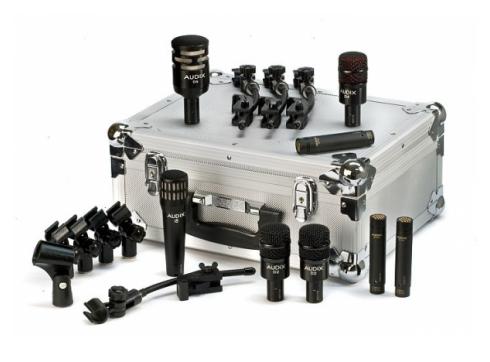1 x Audix D6 (für Bass-Drum), 1x Audix i5 (für Snare-Drum, Guit-Amp, Bläser), 2 x Audix D2 (für Tom, Conga, Guit-Amps, Bläser), 1 x Audix D4 (für Floor-Tom, Bass-Amps, Djembe, Saxophon), 1 x Audix SCX1-hc (für HiHat, akustische Instrumente), 2 x Audix SCX25-A (für OverHeads, Room-Miking, Vocals, akustische Instrumente), 4 x Audix D-Vice (Schwanenhals Rim-Klemmen) und 2 x Audix SMT-25 (elastische Aufhängung für SCX25-A)