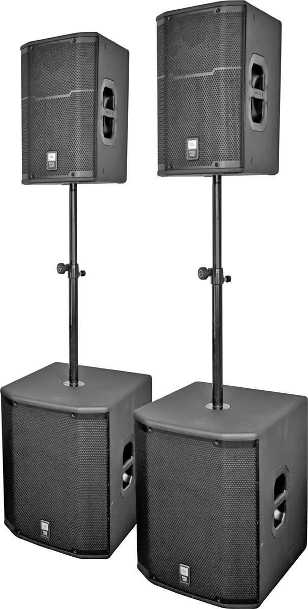 Das JBL PRX 4 System ist ein komplettes Beschallungssystem für PA Verleiher, Bands, DJs Schulen und Alleinunterhalter. Es besteht aus den beiden Endstufen Crown XTi 2002 (Topteile) und Crown XTi 4002 (Subwoofer) sowie den Lautsprechern JBL PRX412M und PRX418S.